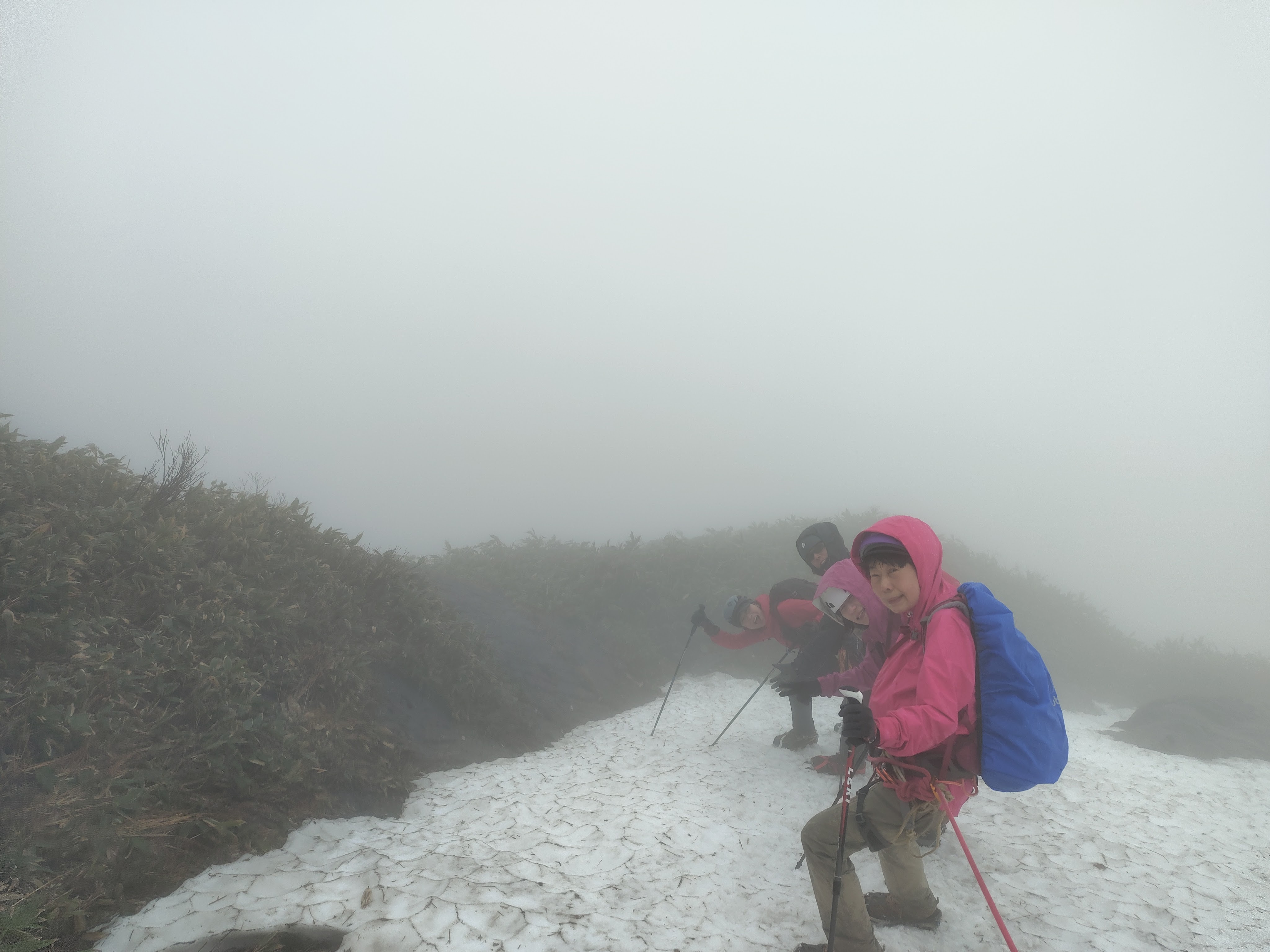 雨のハードコンディション、アイゼンの着脱など経験いただき、夏の目標バリエーションルートに向けて良い練習が出来ました。