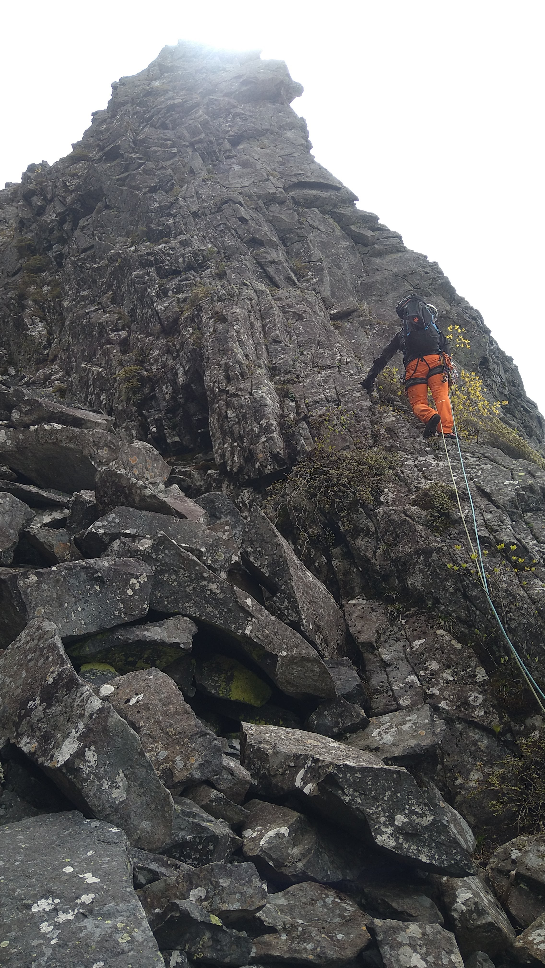 中央稜の末端壁を回り込んだところが取り付き。ここからクライム・オンです。
