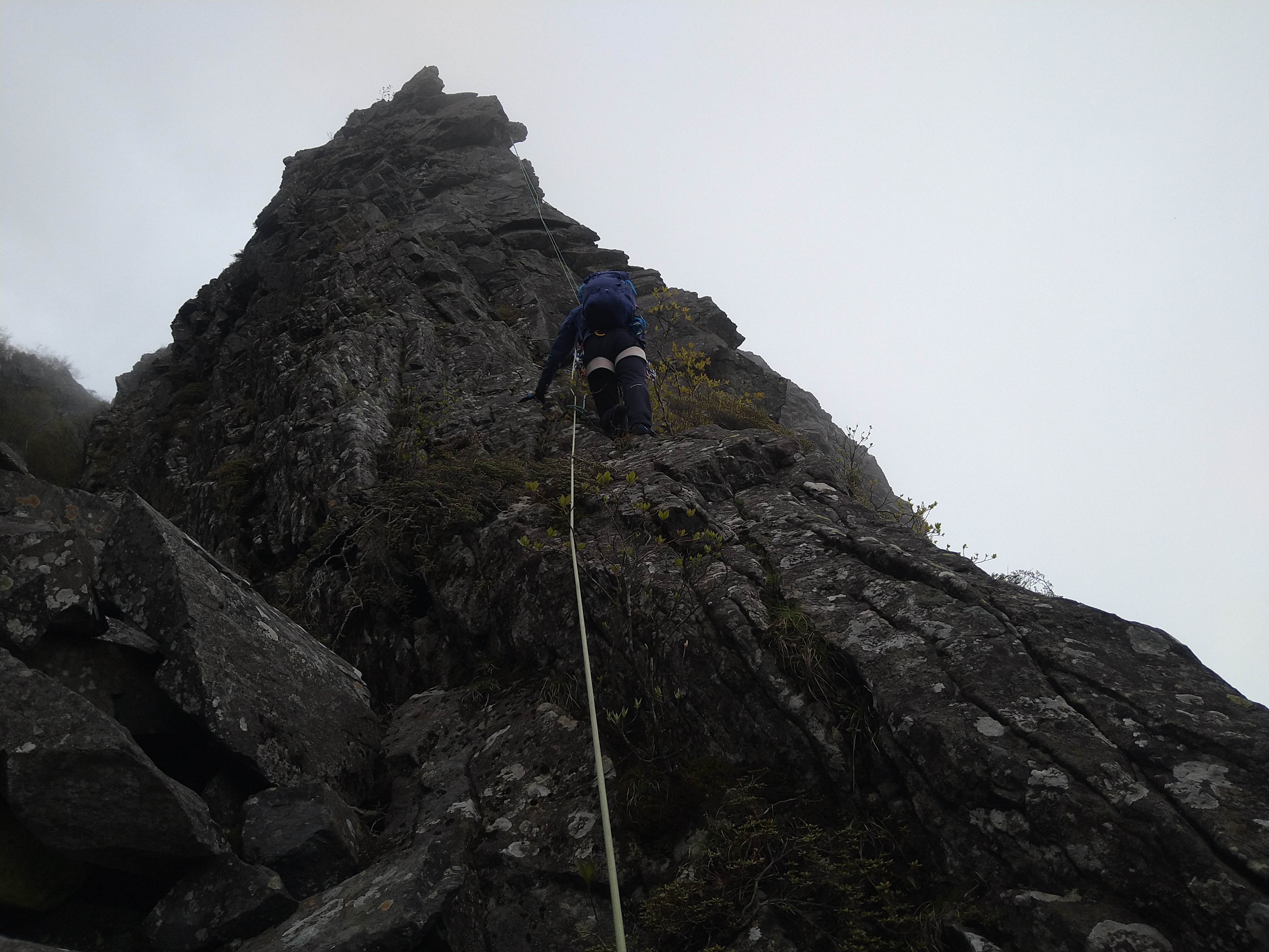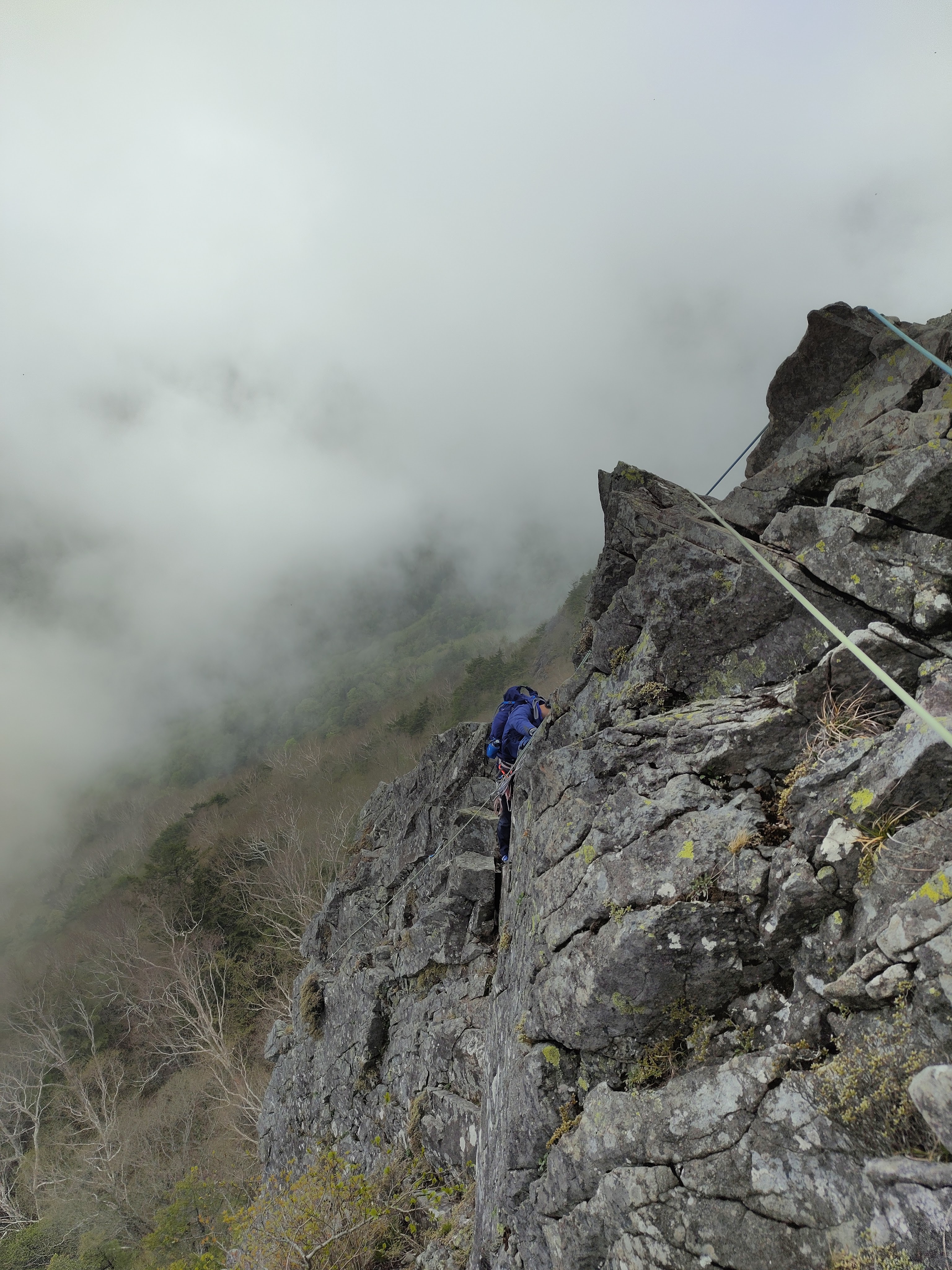 リッジ上を忠実に登っていきます。1ピッチ目の核心がルート全体の核心。少し難し目ですが、ホールドもスタンスも豊富です。