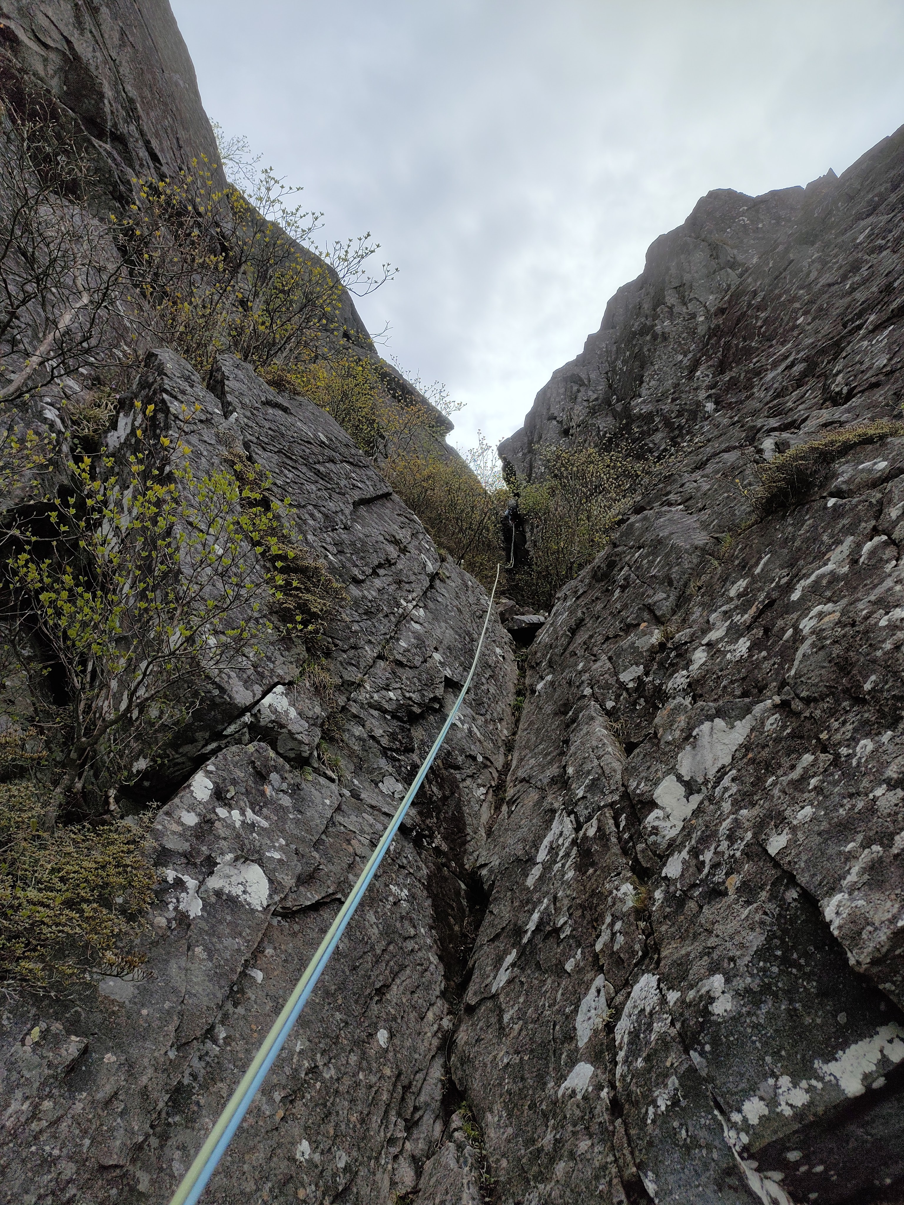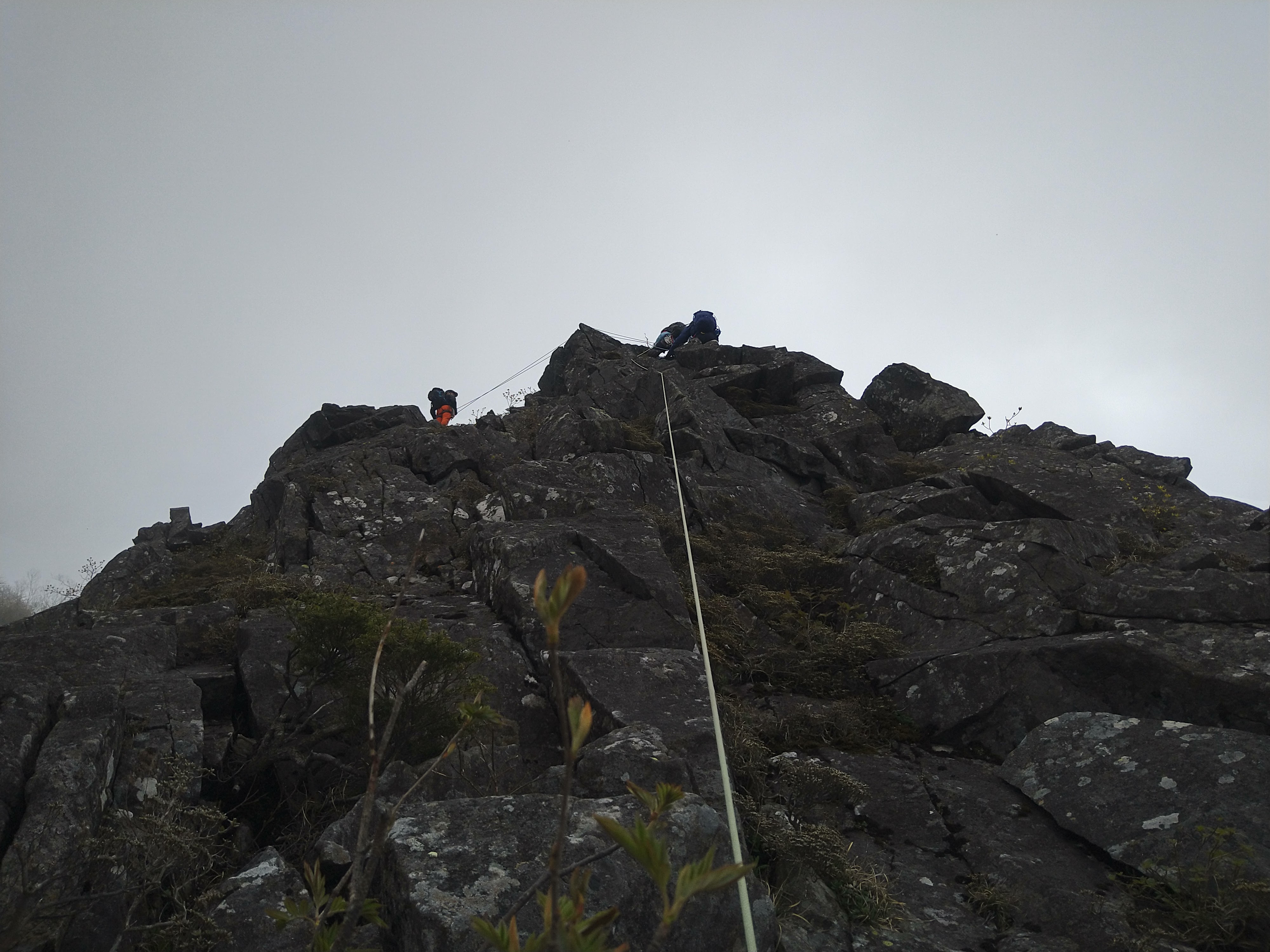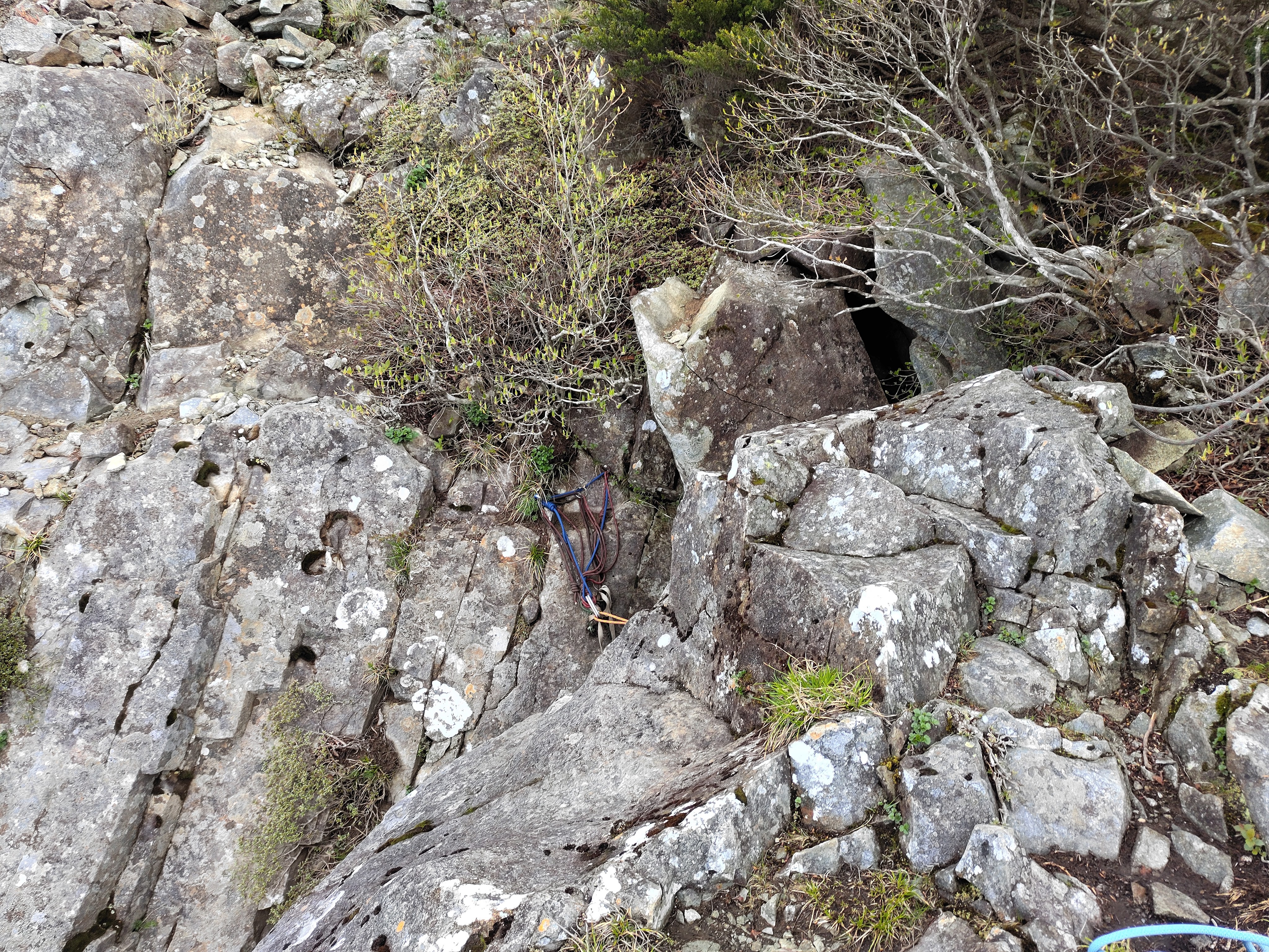 懸垂下降×2回で取り付きまで行きます。さほど傾斜は強くないですが、慎重に。