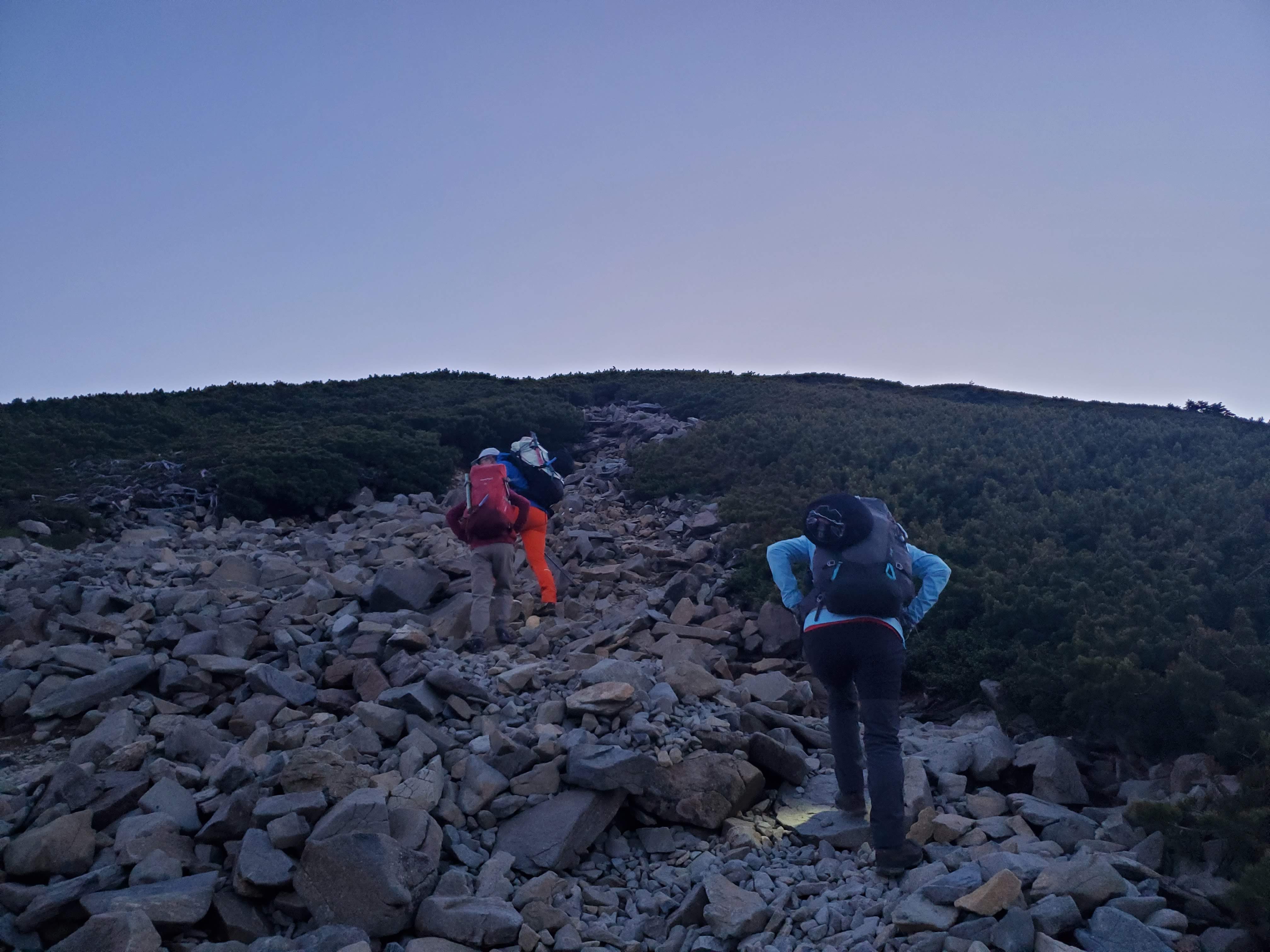 翌日アタック日は黎明からスタート。まずは独標を目指して。だんだんと夜が明けていきます。