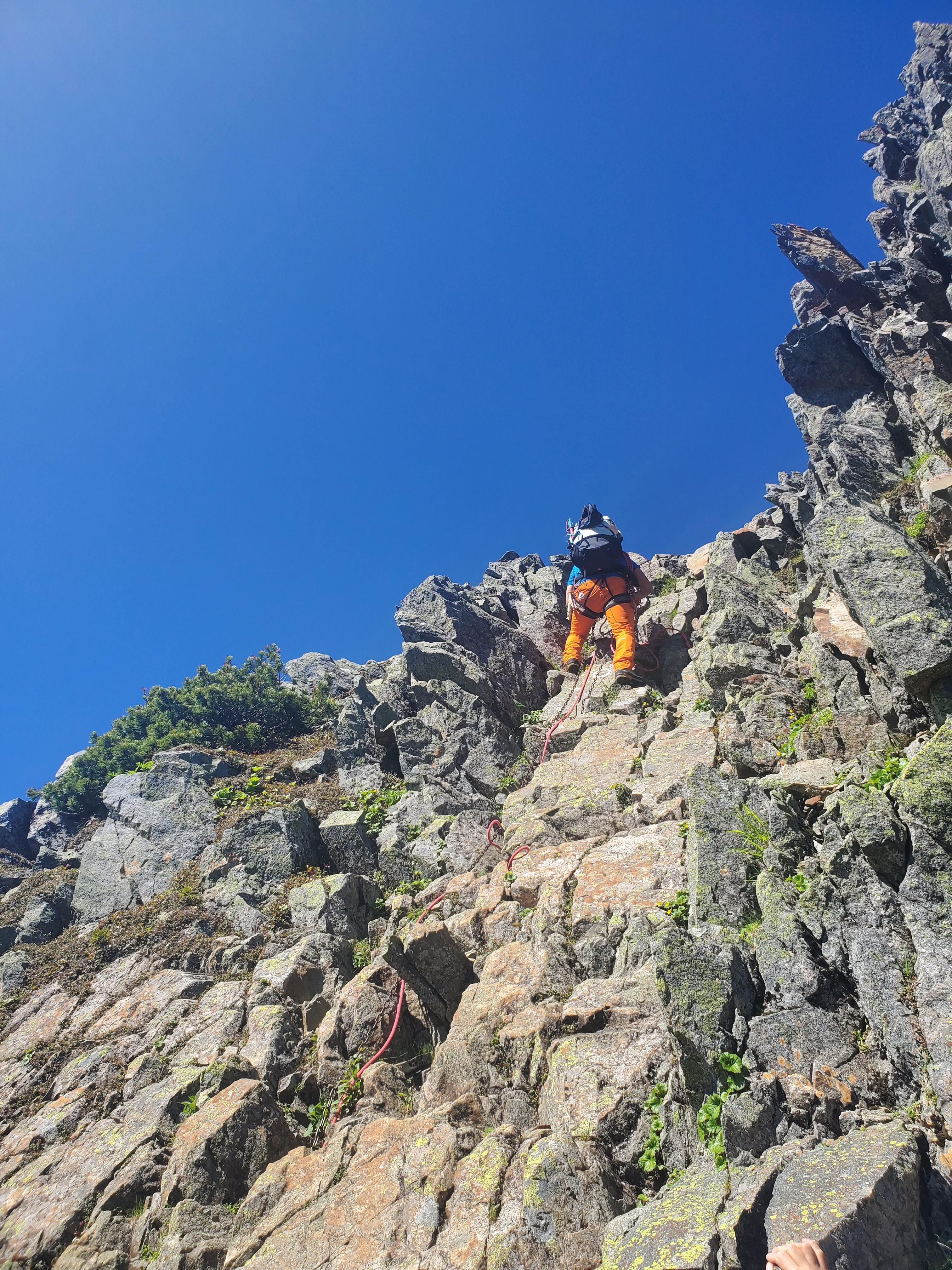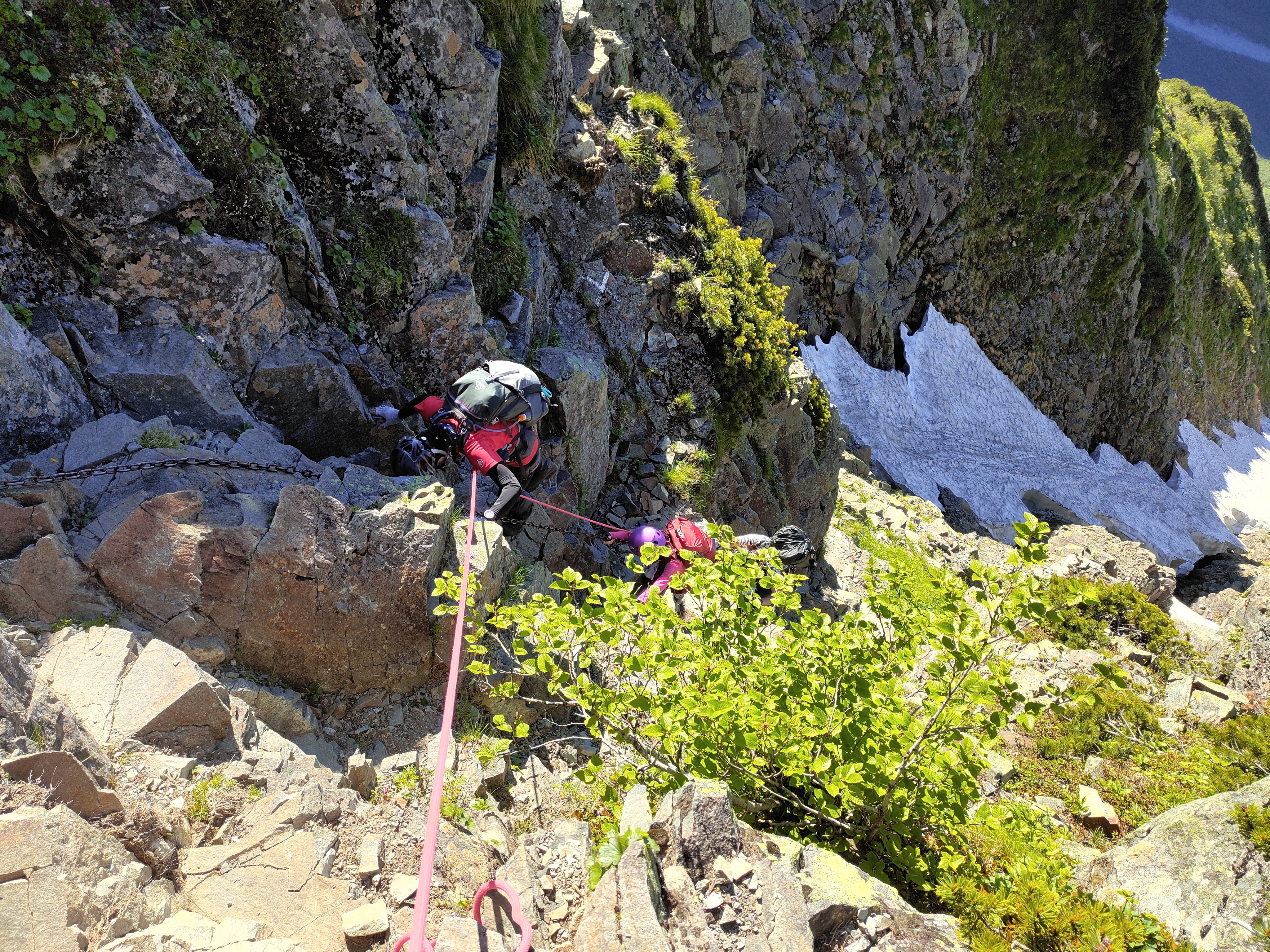 トラバースあり、逆層の岩壁ありと、変化に飛んだ登下降。天気もよく、楽しく登れました。