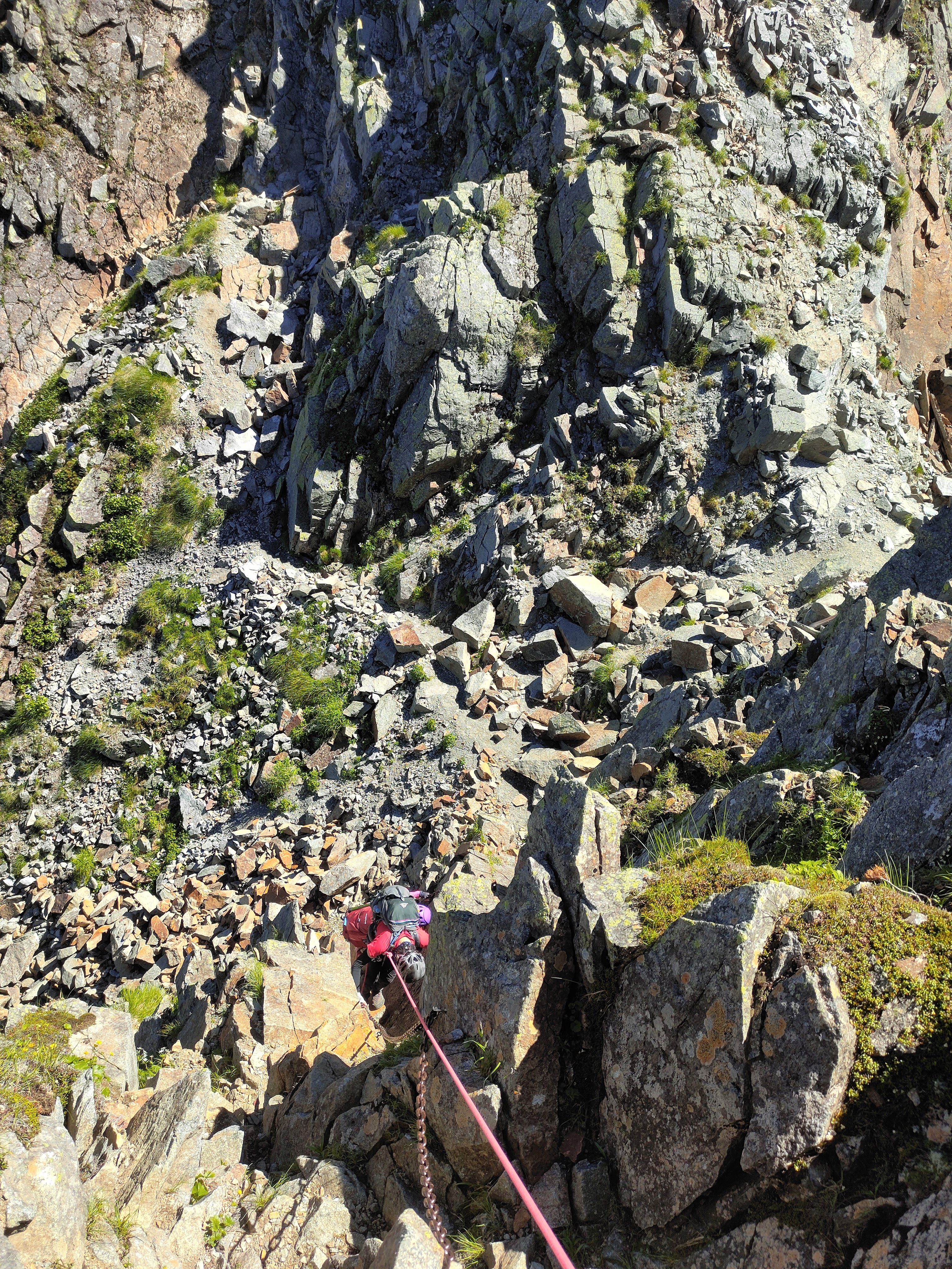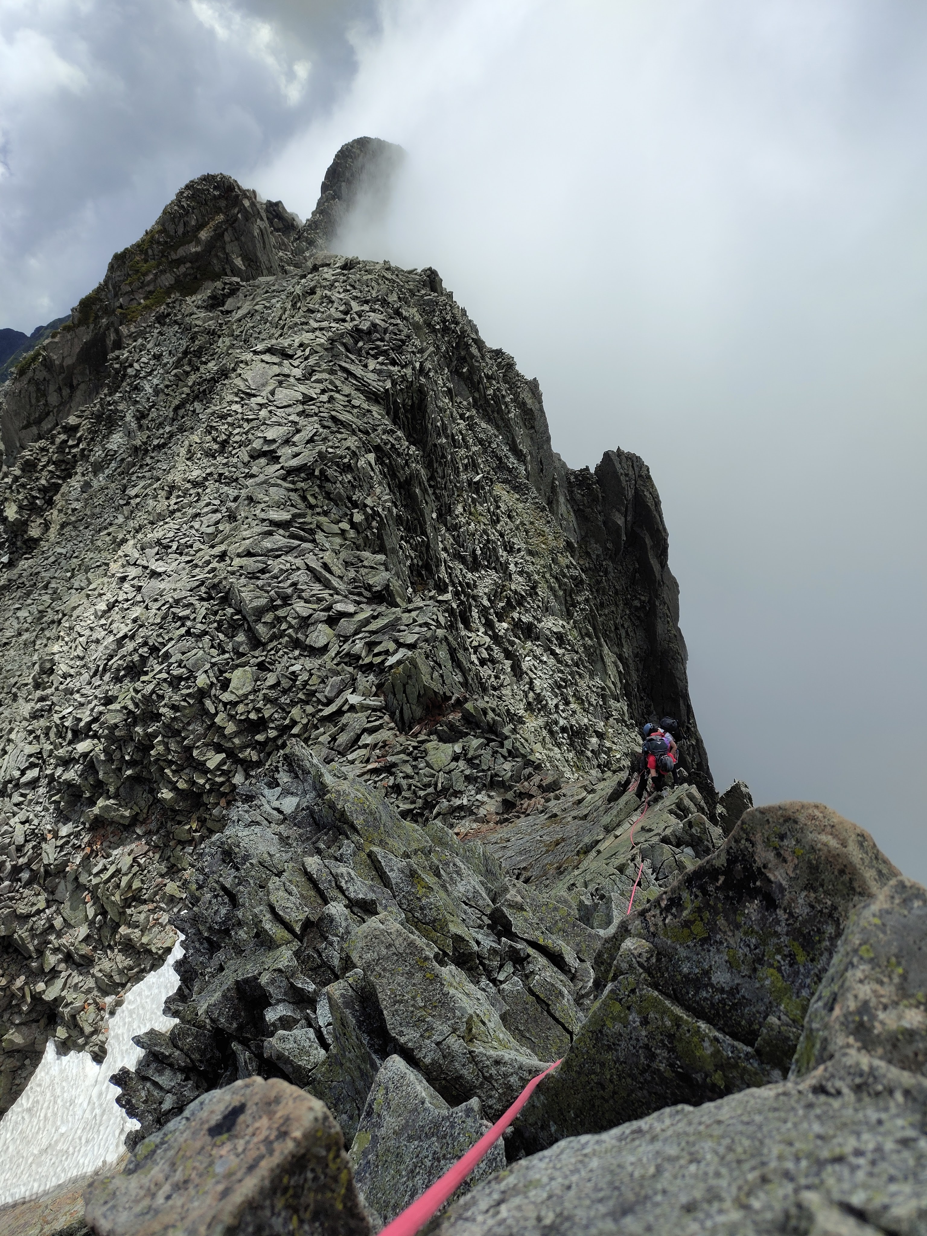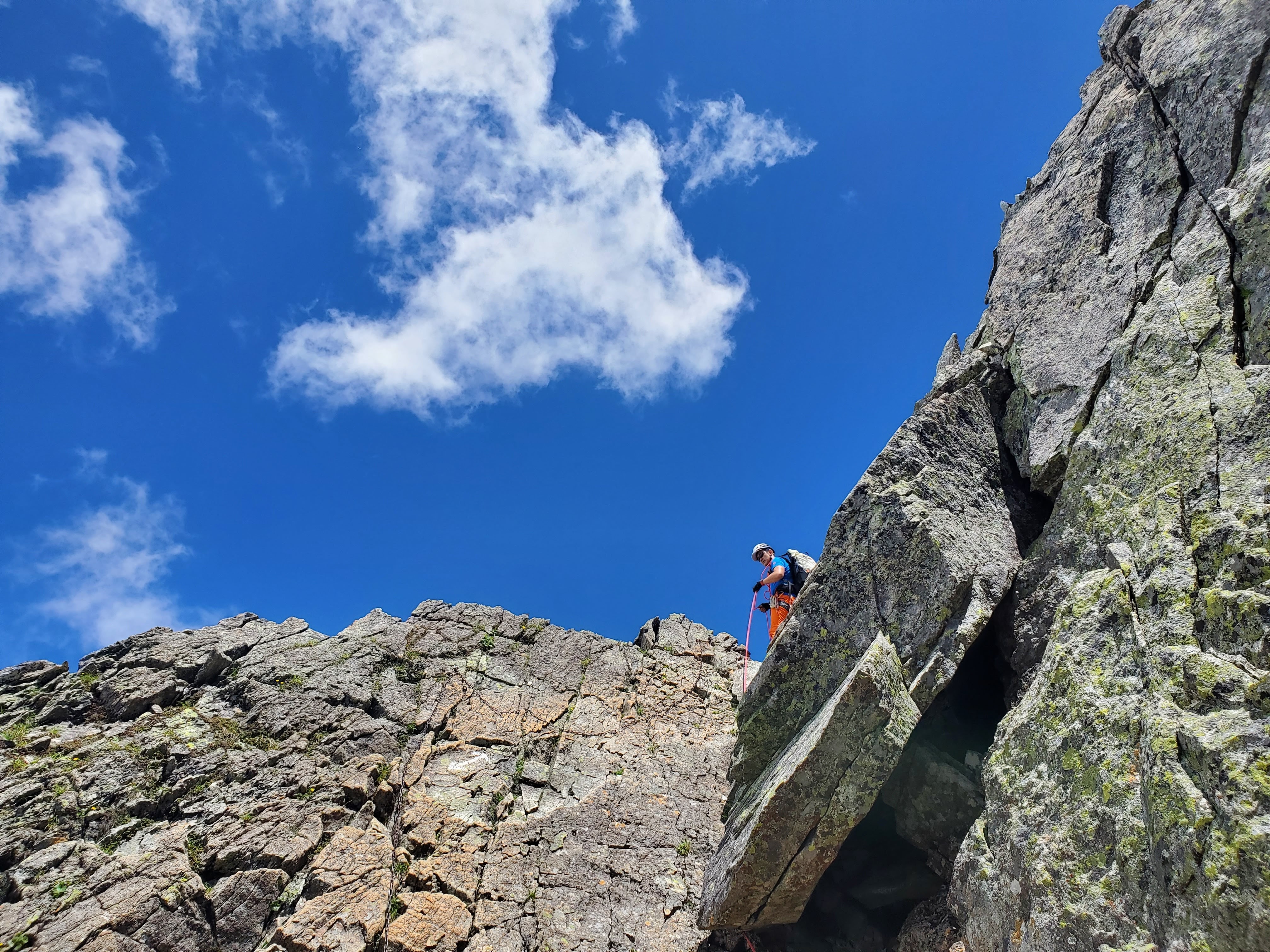 ジャンダルムを越えてもまだまだ険しい岩稜は続きます。ロバの耳は登りよりも下降が険しい。