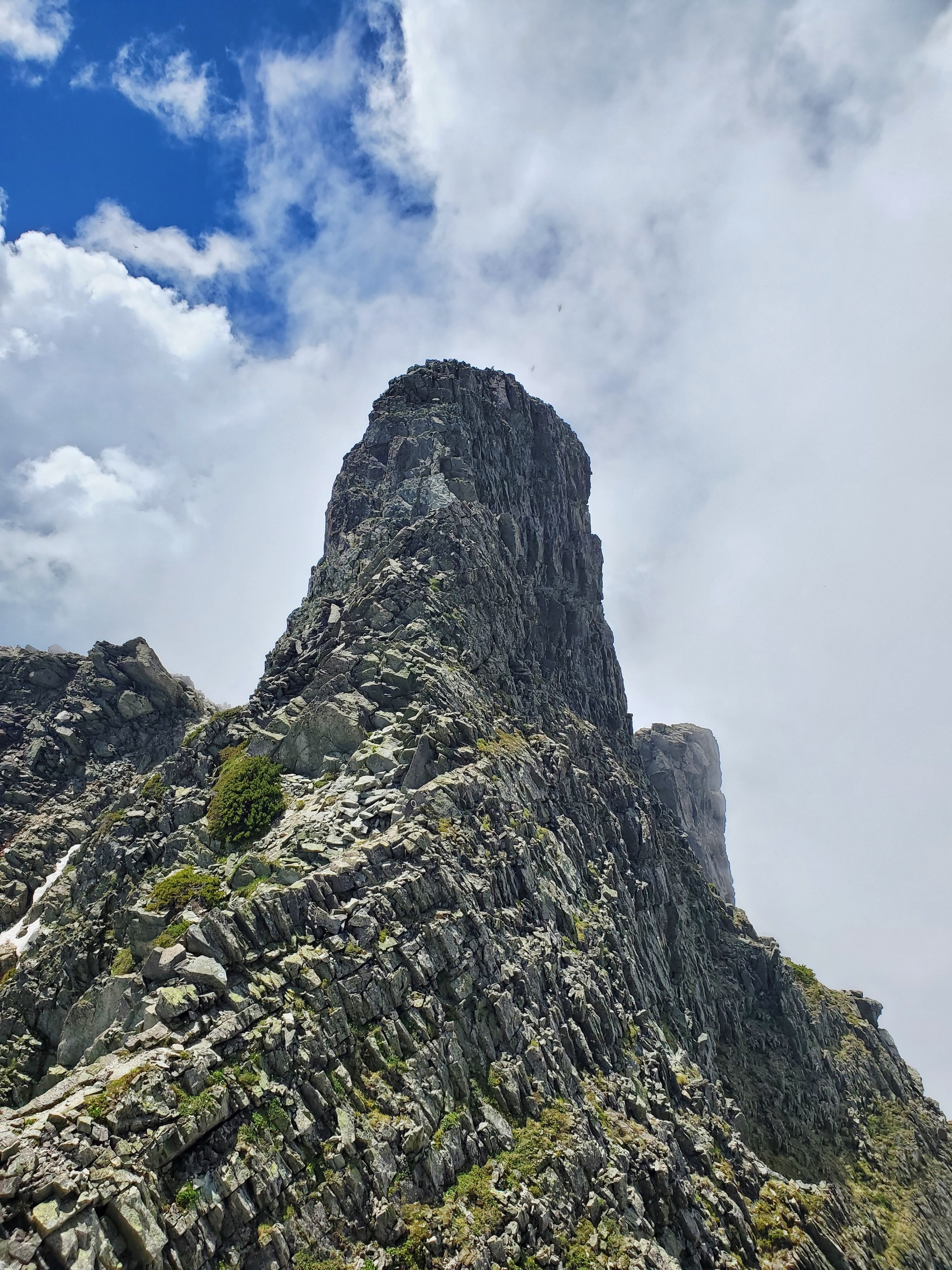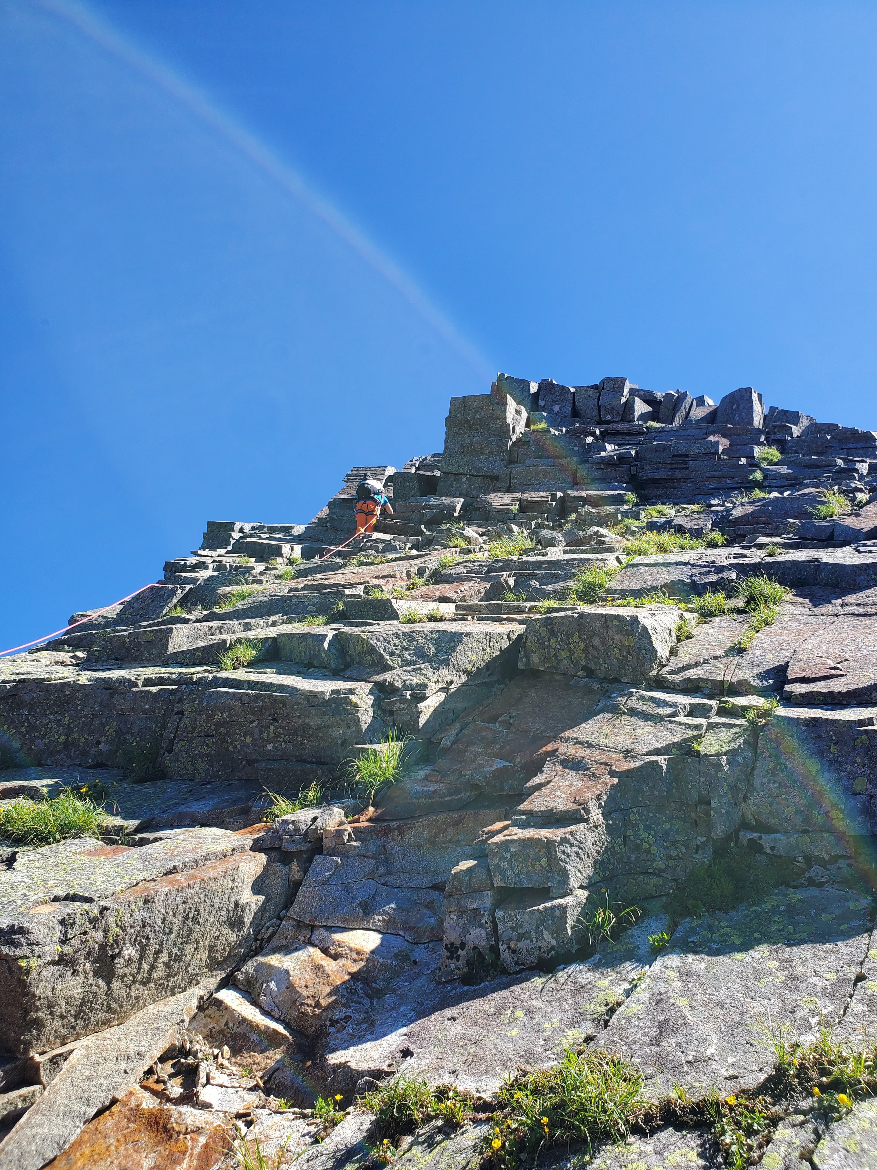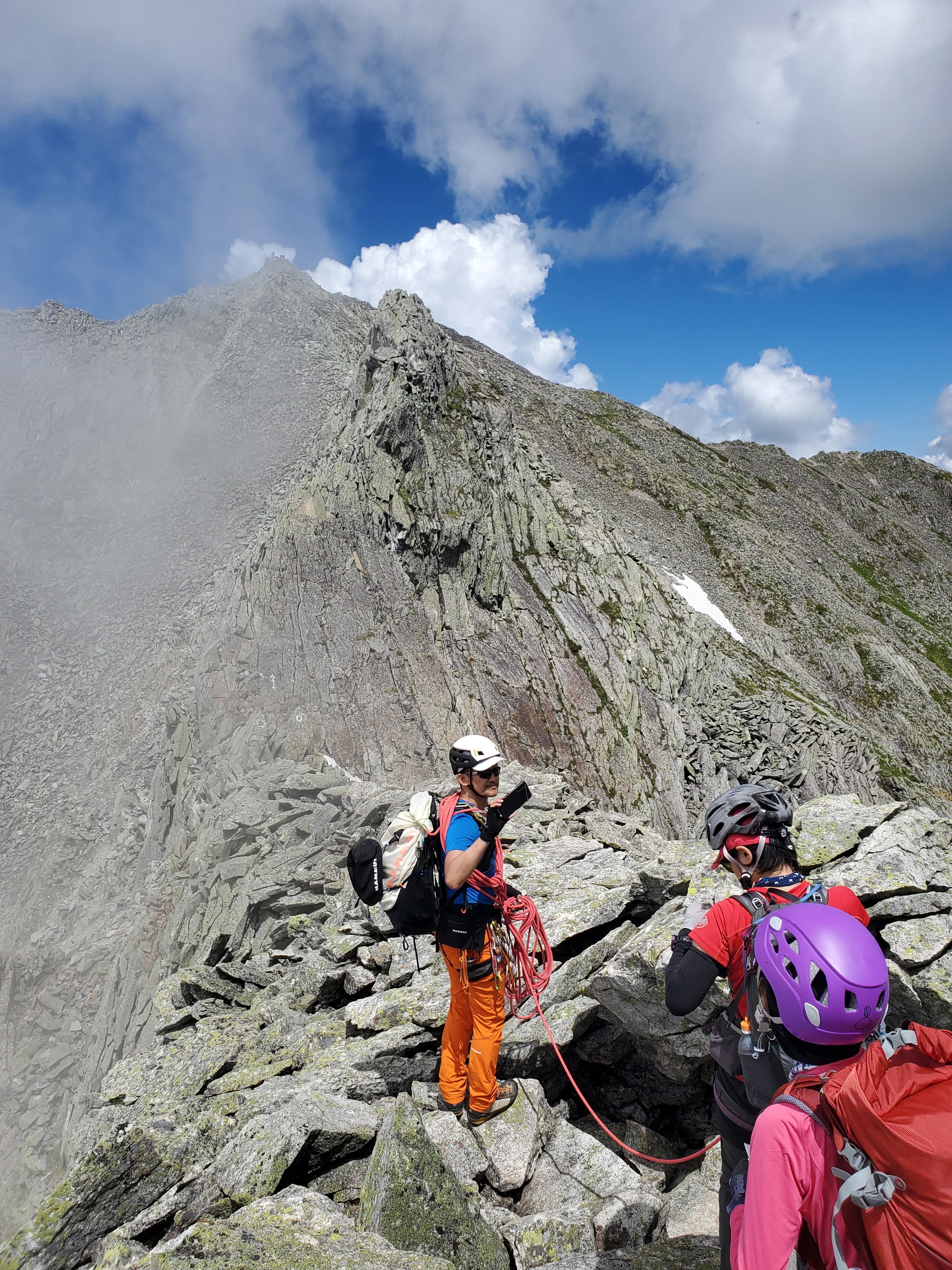 ジャンダルムを越えてもまだまだ険しい岩稜は続きます。ロバの耳は登りよりも下降が険しい。