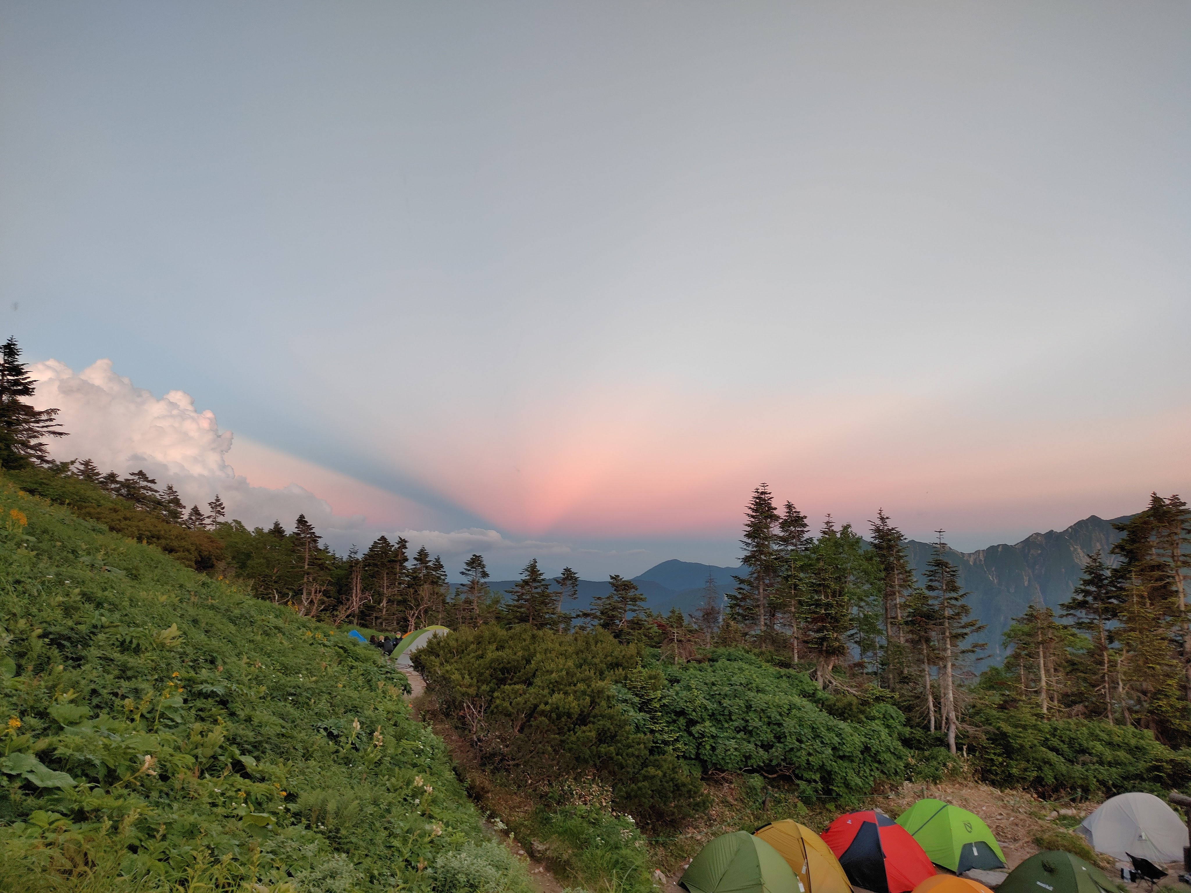 西穂高岳山荘のテンバからの夕景。明日の完登を祈って。