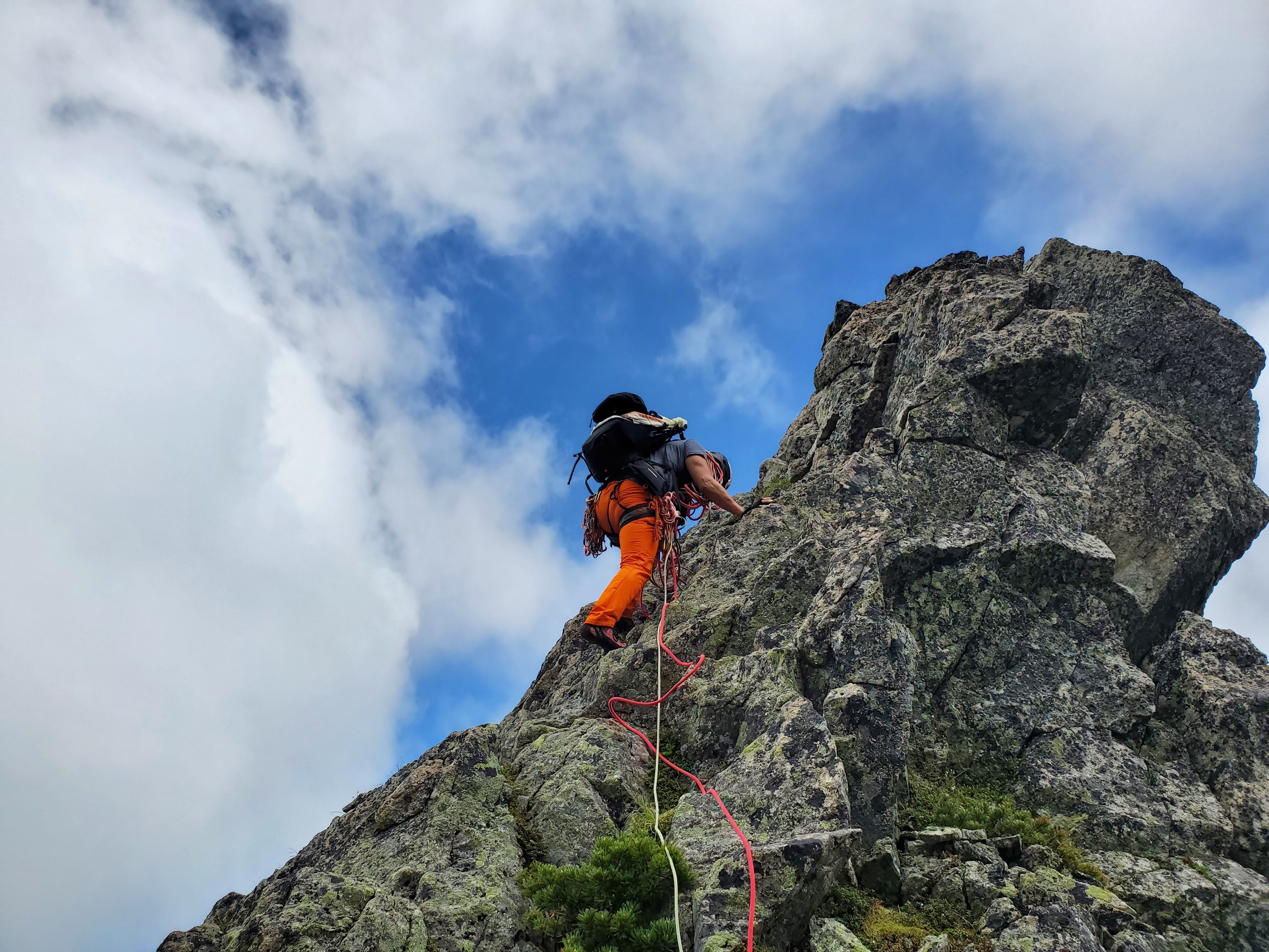 ジャンダルム・飛騨尾根はクラシックな名ルートで、期待に違わぬ良い景色と爽快なクライミングが楽しめます。難易度も高くなく、マルチピッチ初心者でも十分楽しめます。