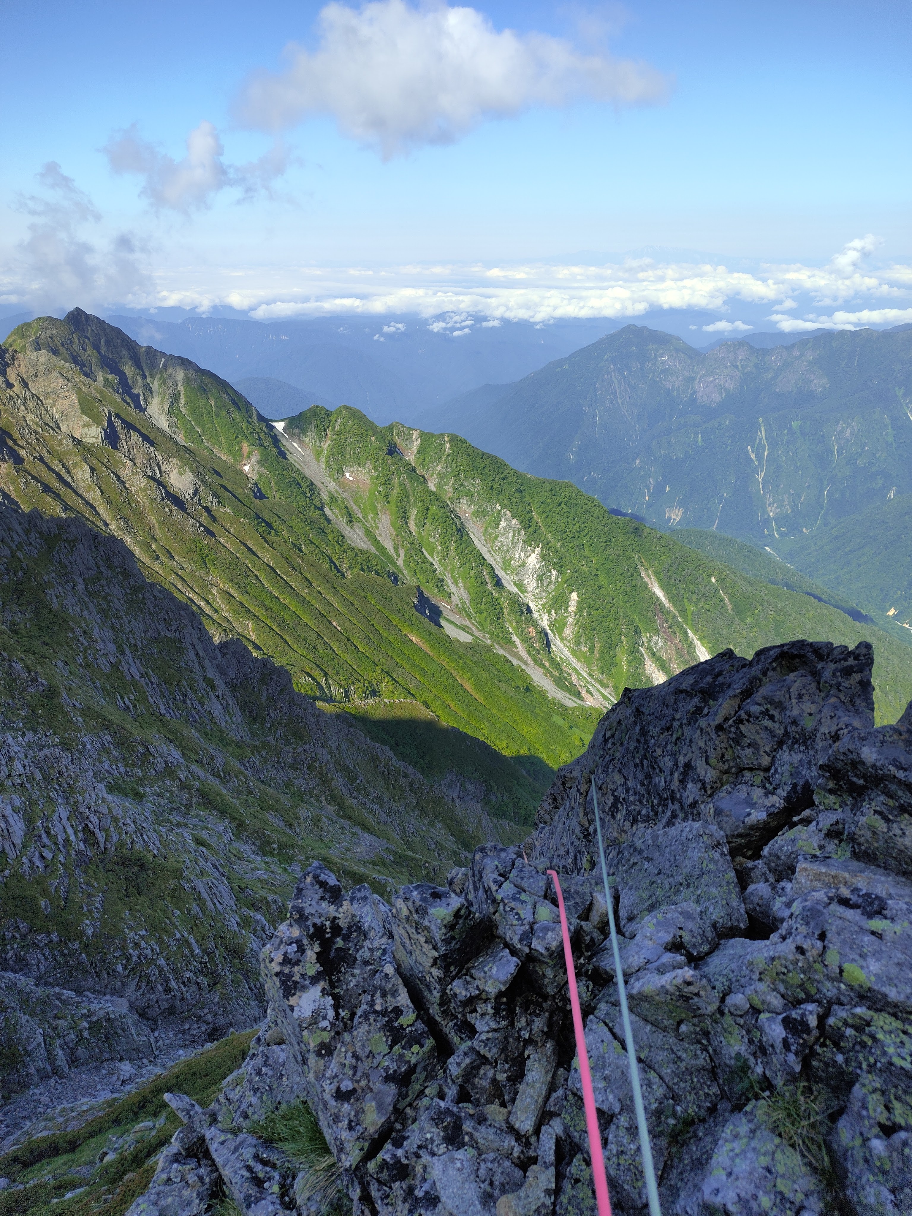 通常は残雪期に登られますが、無雪期でも雄大なマルチピッチクライミングが楽しめます。