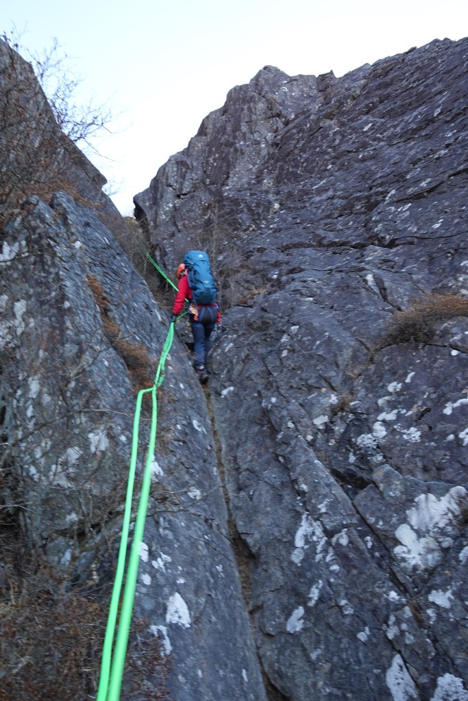1ピッチ目のせり出したリッジの乗り越えが核心。残り2ピッチはⅢ程度で簡単なクライミングが楽しめます。