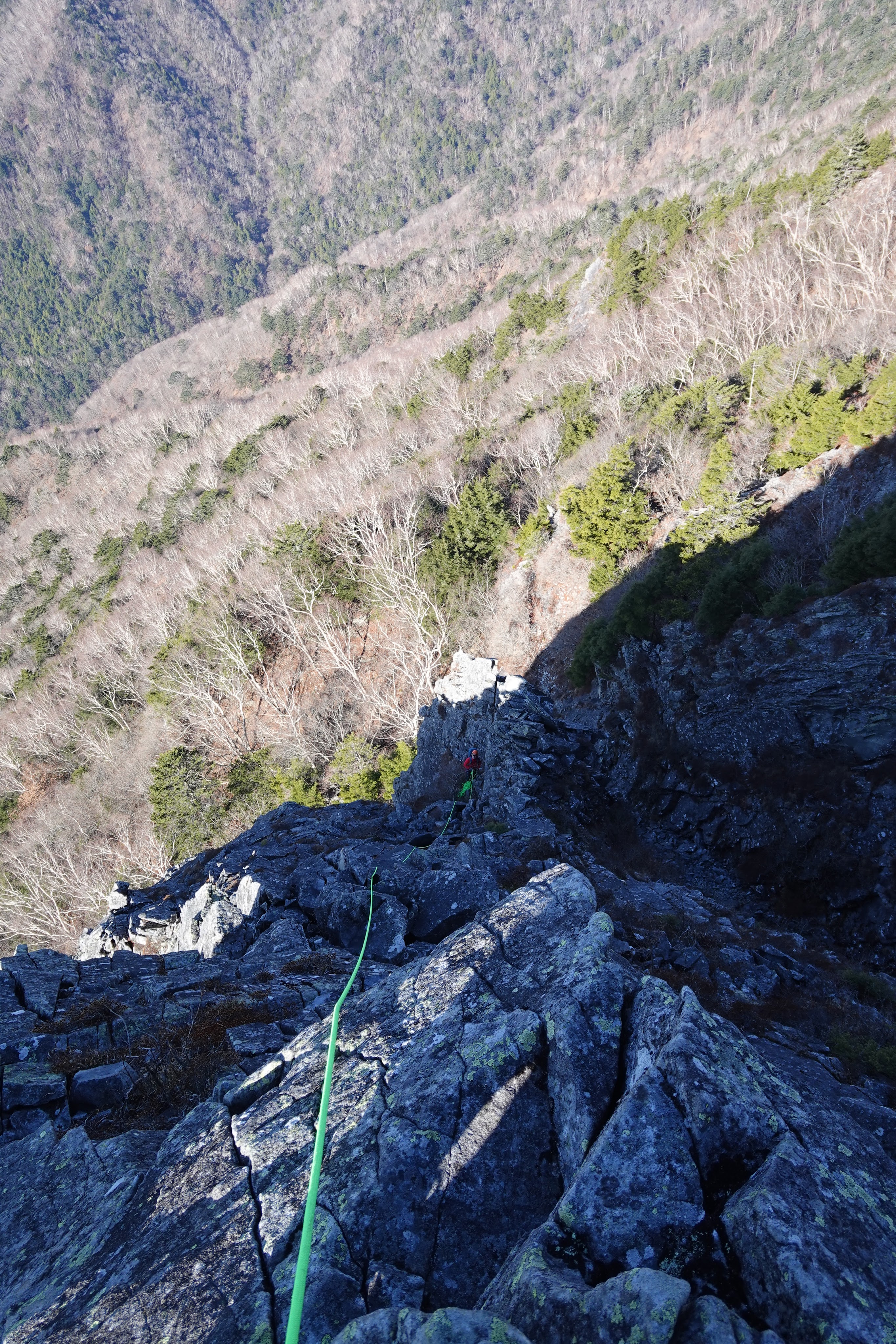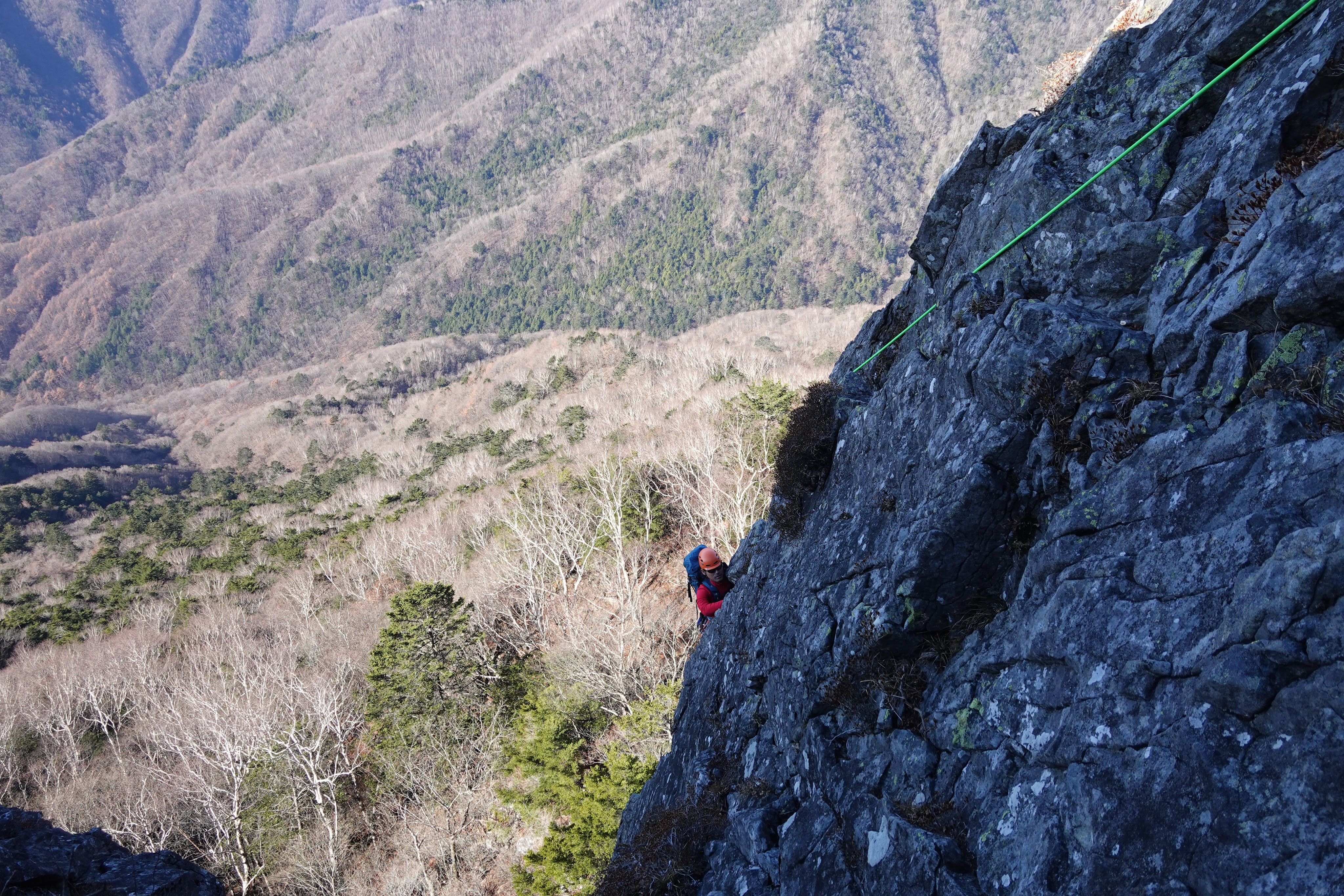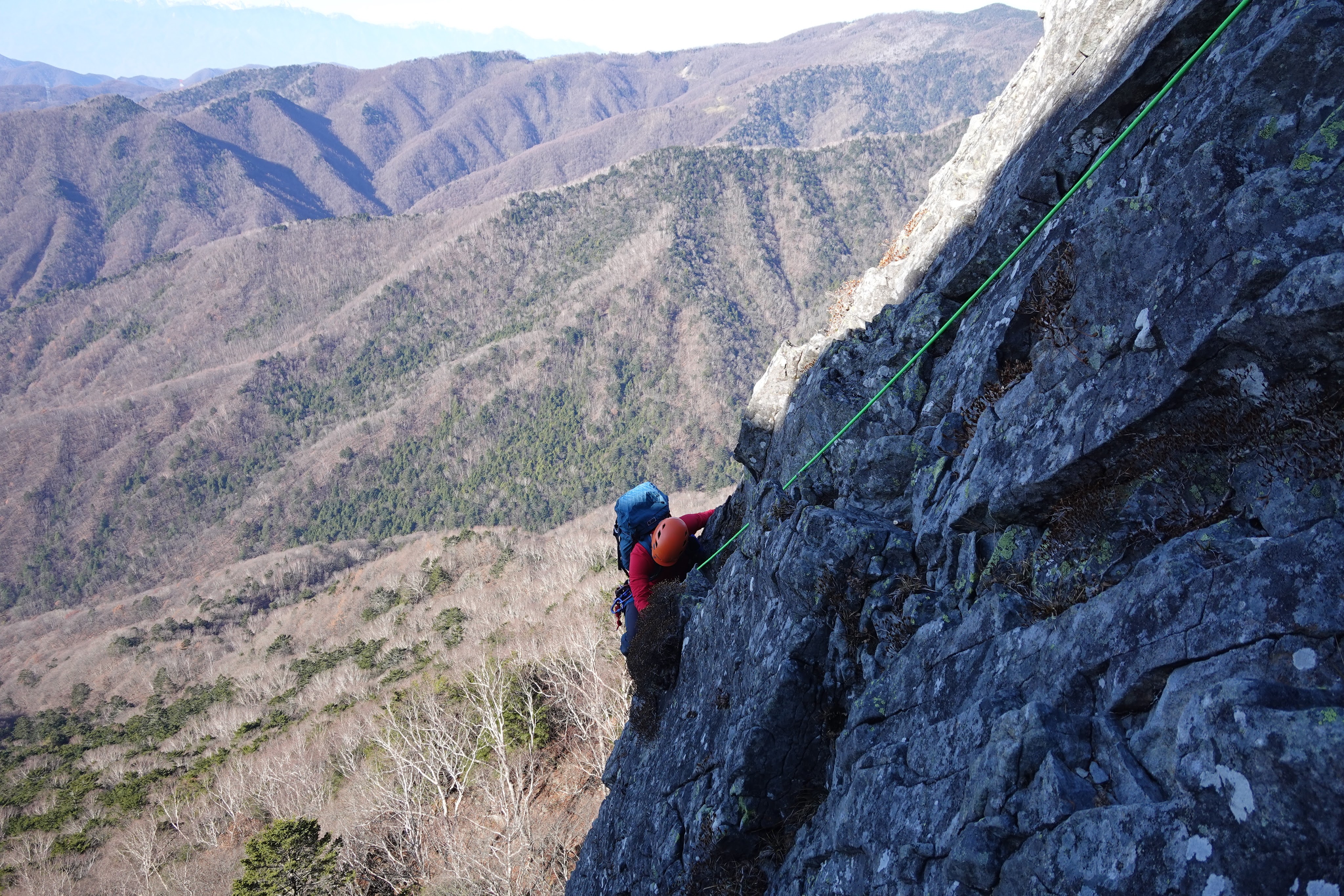 乾徳山は岩場の山で、頂上の側壁にマルチピッチのルートがいくつかあります。