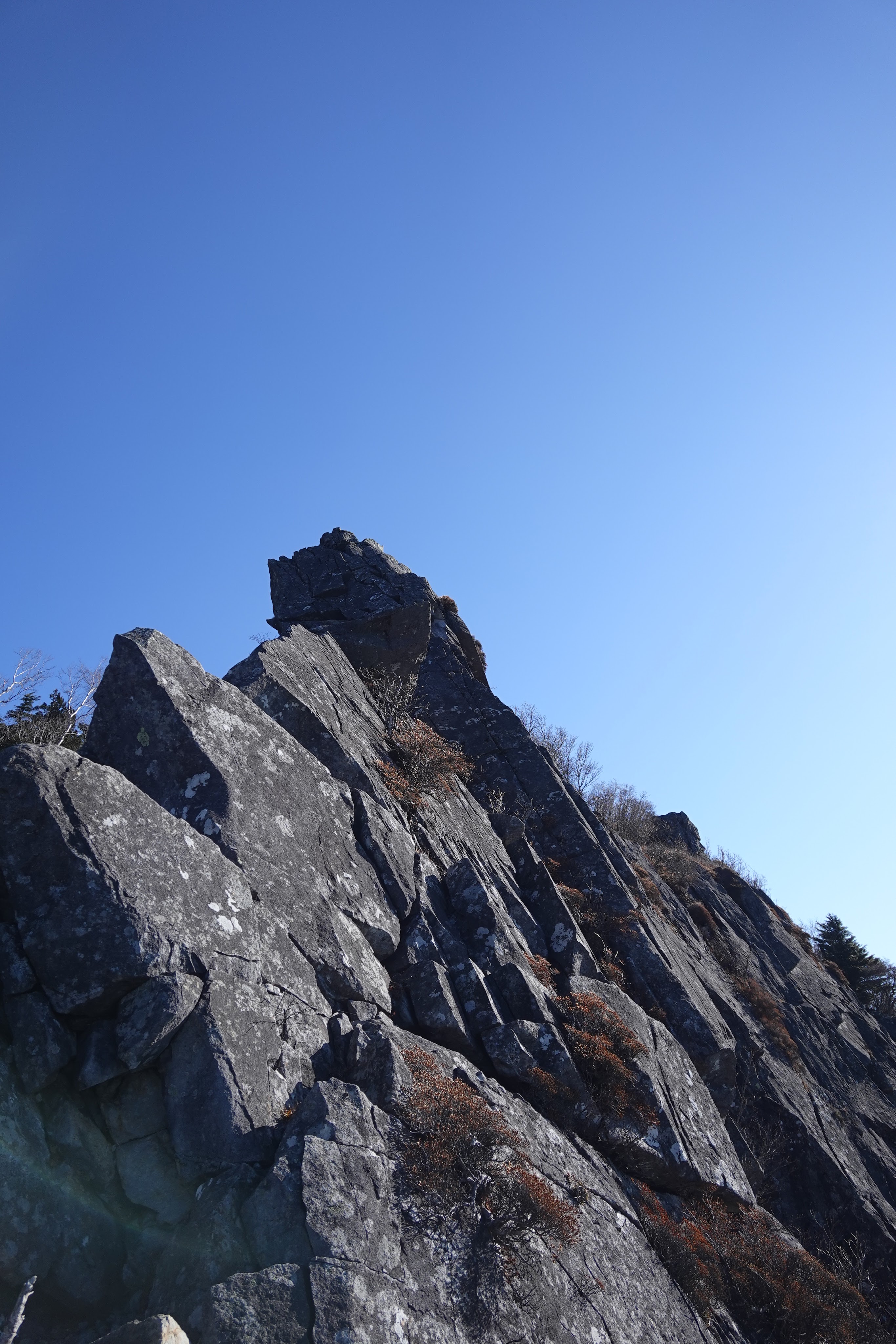 稜線に出てからは、頂上の側稜を1ピッチ登って乾徳山の頂上へ。ここもホールドも豊富で楽しいピッチです。