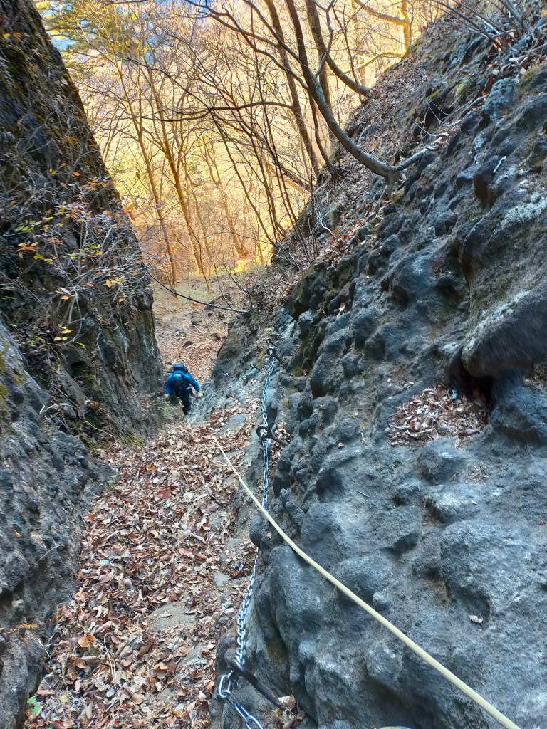 チェーンはありますが、傾斜のキツイ厳しい岩場が連続します。