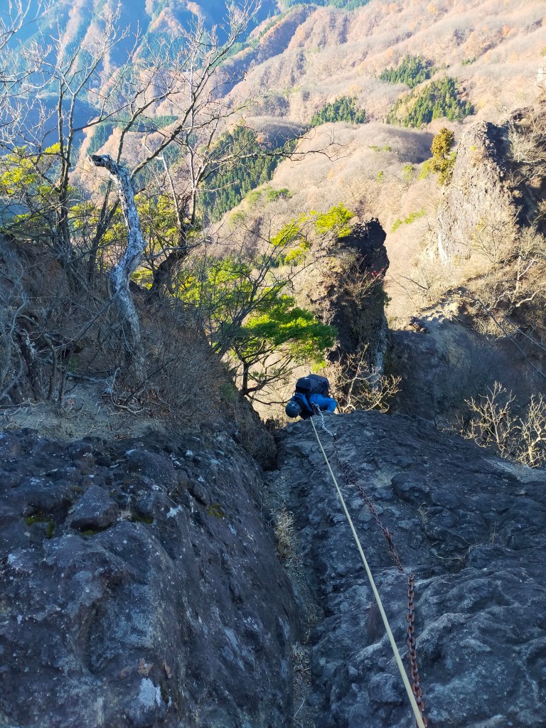 妙義山は標高は低く手頃ですが、主稜線上は穂高や剣と同等かそれ以上の難易度の岩場が連続します。十分準備が必要ですね。