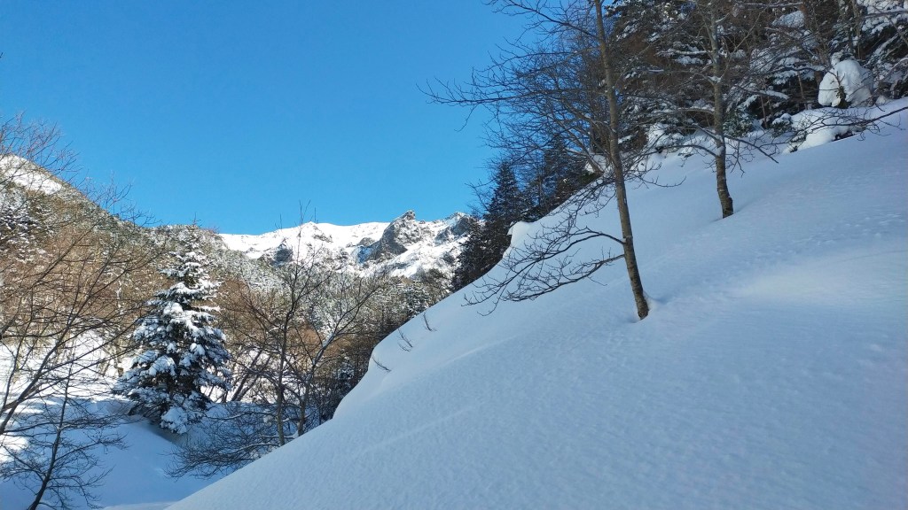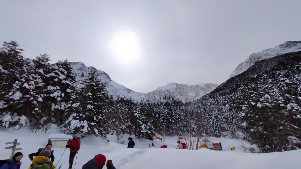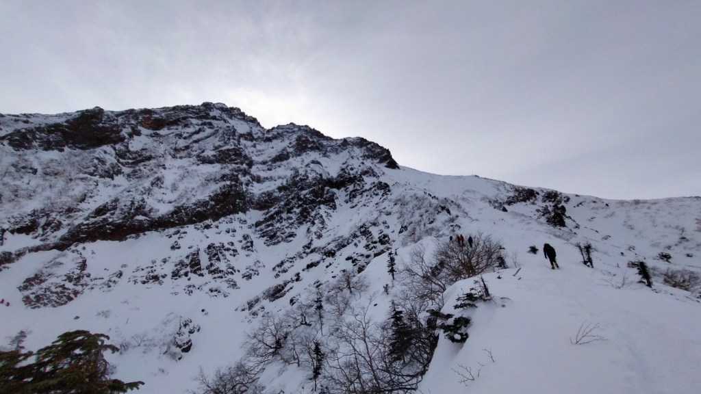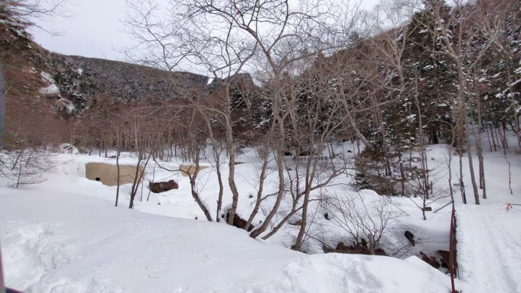 降雪直後で、晴れ間もありましたがまだ強風が残っていました。