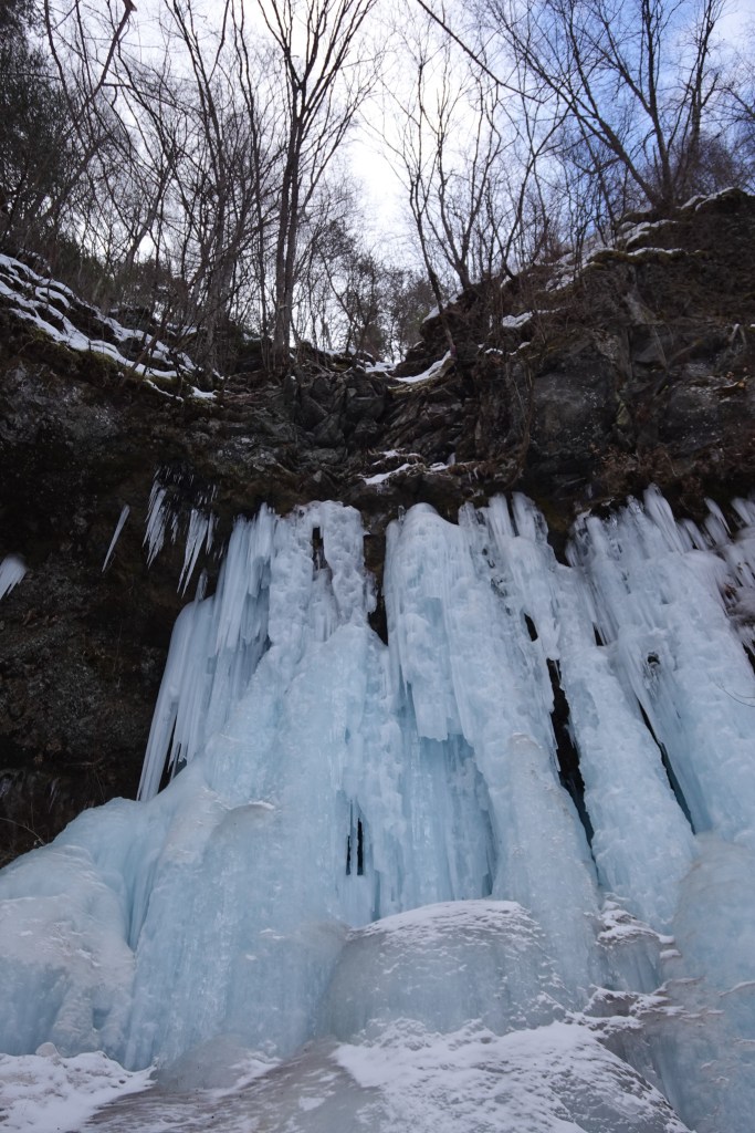 八ヶ岳山荘に泊まって、牡蠣をたくさん食べさせてもらい、翌日は角木場の氷柱へ。