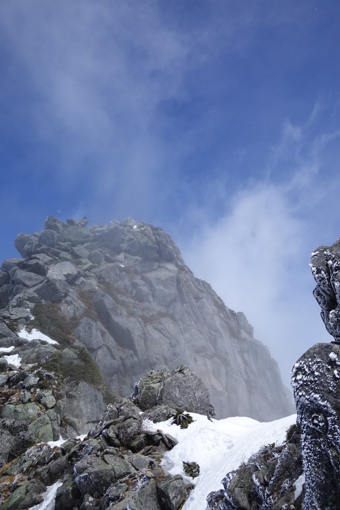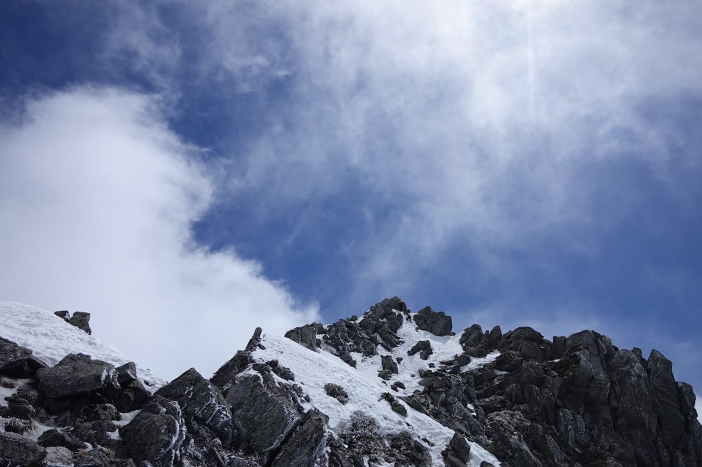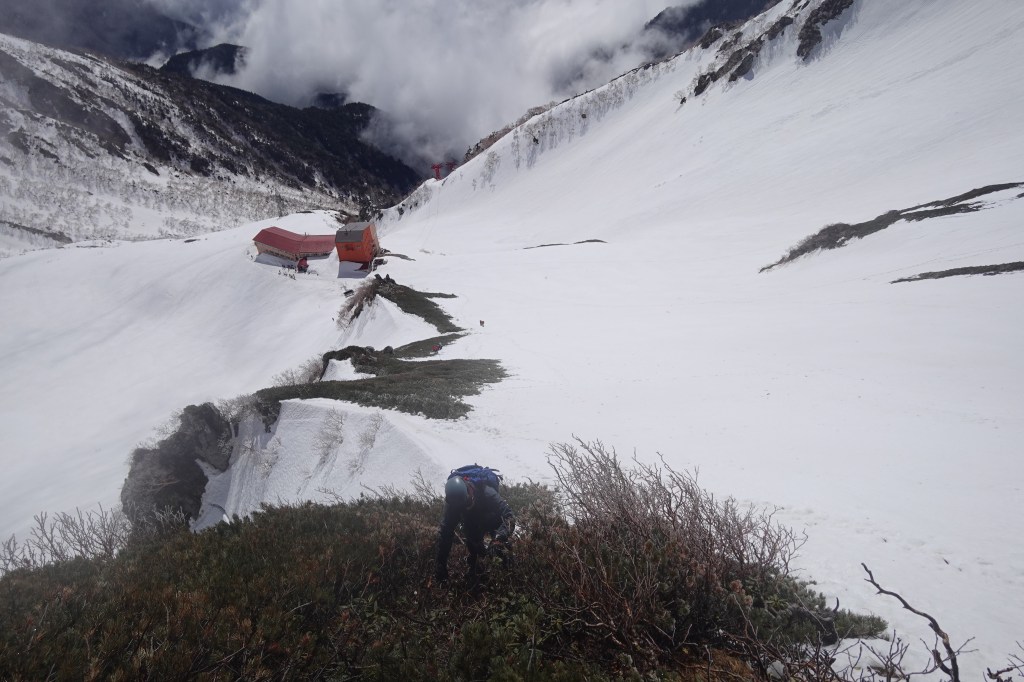 稜線から宝剣岳までも、かなり雪が溶けて難易度は下がっていました。