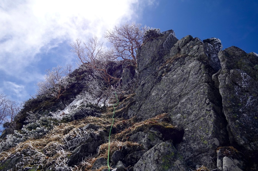 岩壁では、だいぶ雪が解けてブッシュが多く出てました。