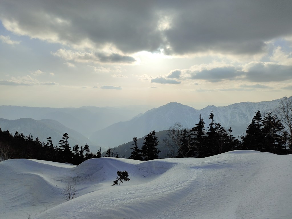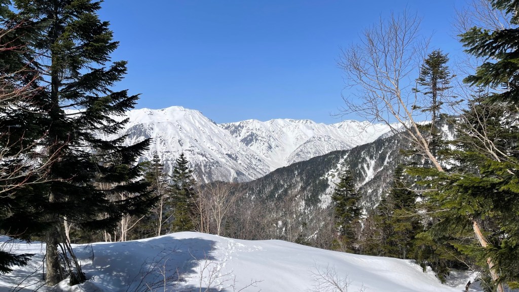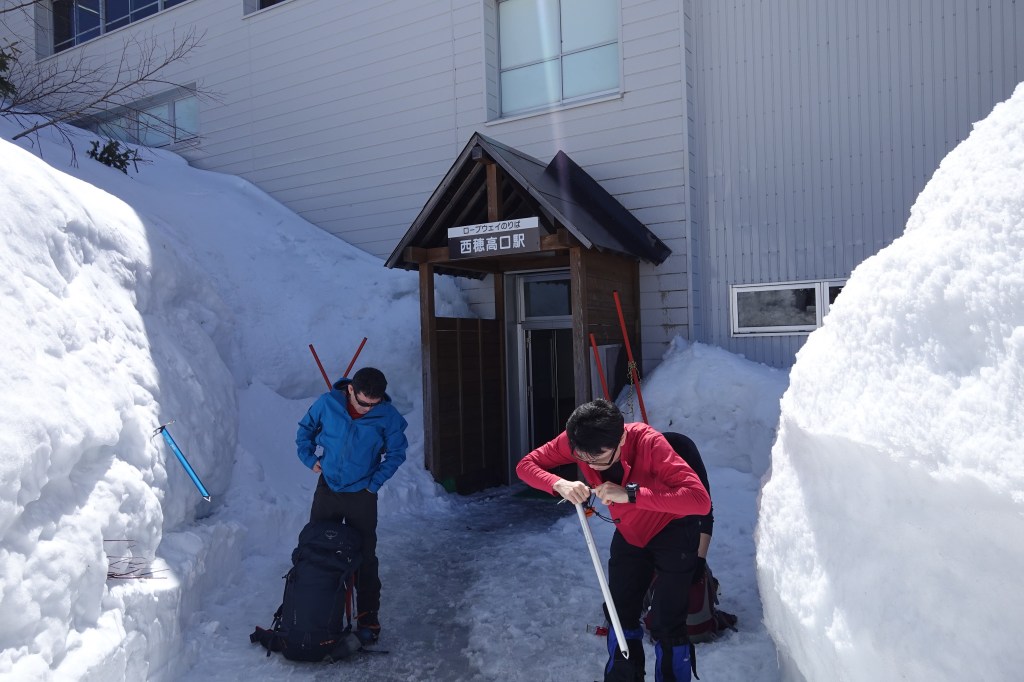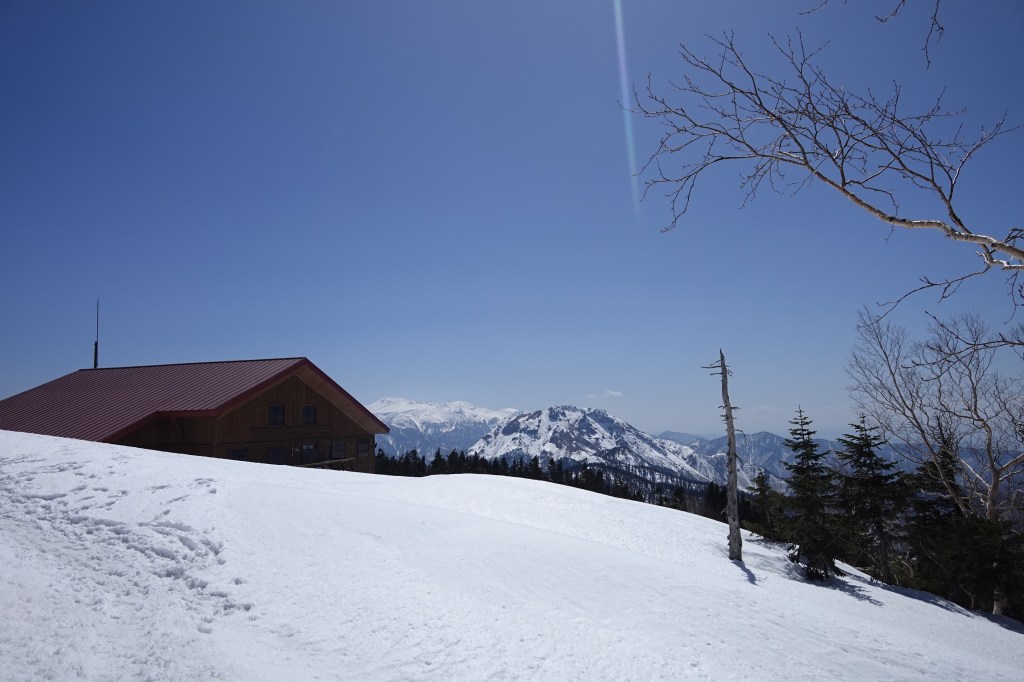 新穂高ロープウェイで西穂口にあがり、すっかり春の雪になった歩きやすい登山道を西穂山荘へ。
