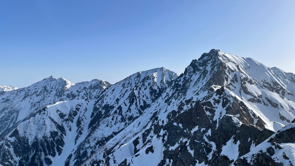 奥穂から、槍が岳まで、素晴らしい眺望でした。