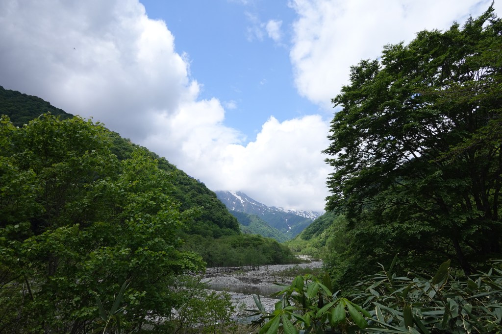 入渓点に戻ると、初夏の青空と雲が広がってました。