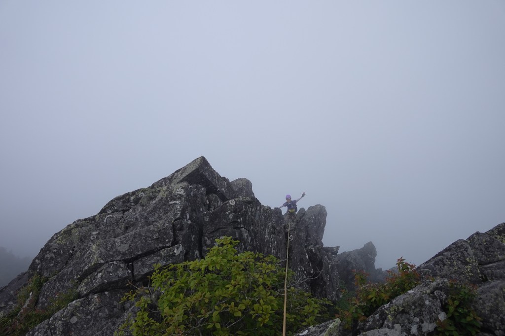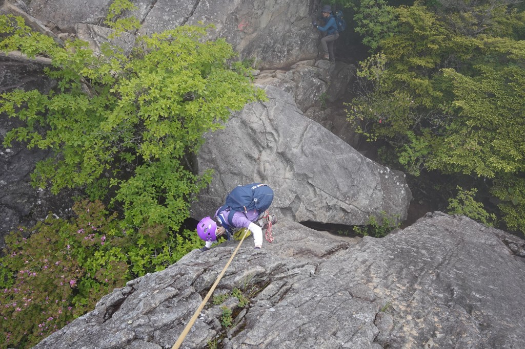 最後まで雨模様でしたが、なんとか夏の目標ルートに向けた岩登り実践練習山行をこなせました。