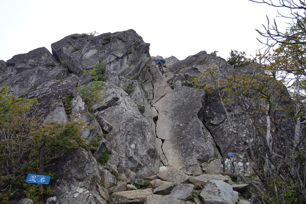 まずは髭剃岩で一般登山道から離れ、スラブチックな岩壁を登ります。