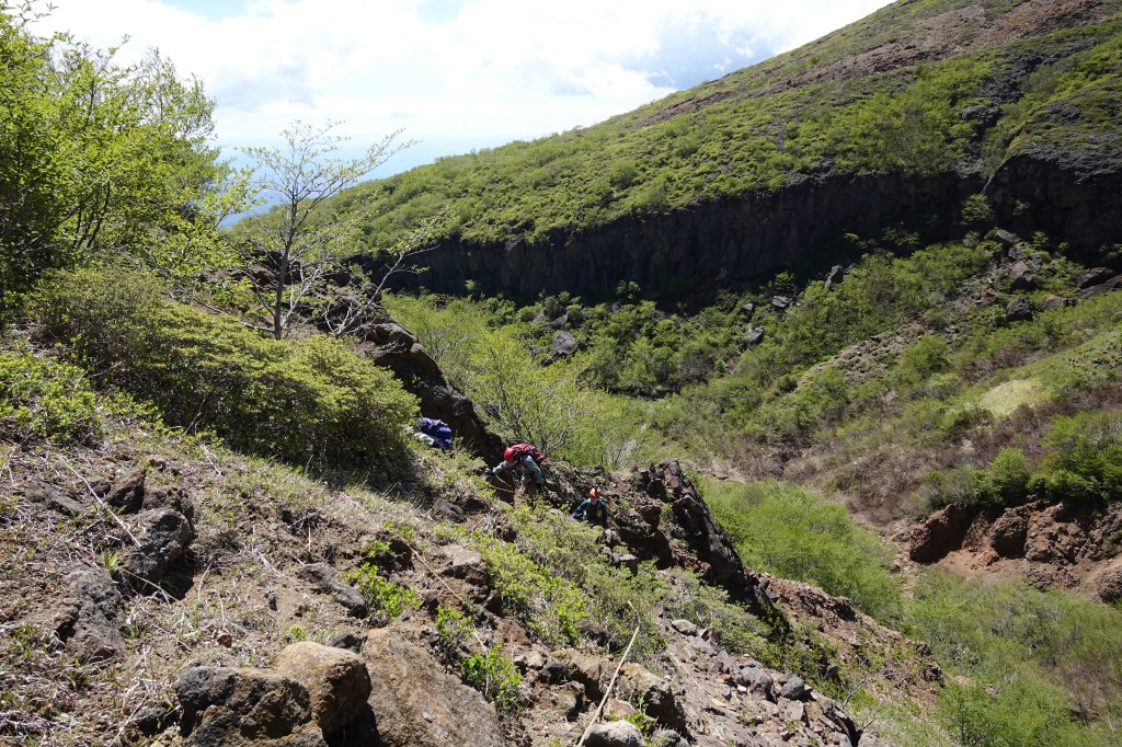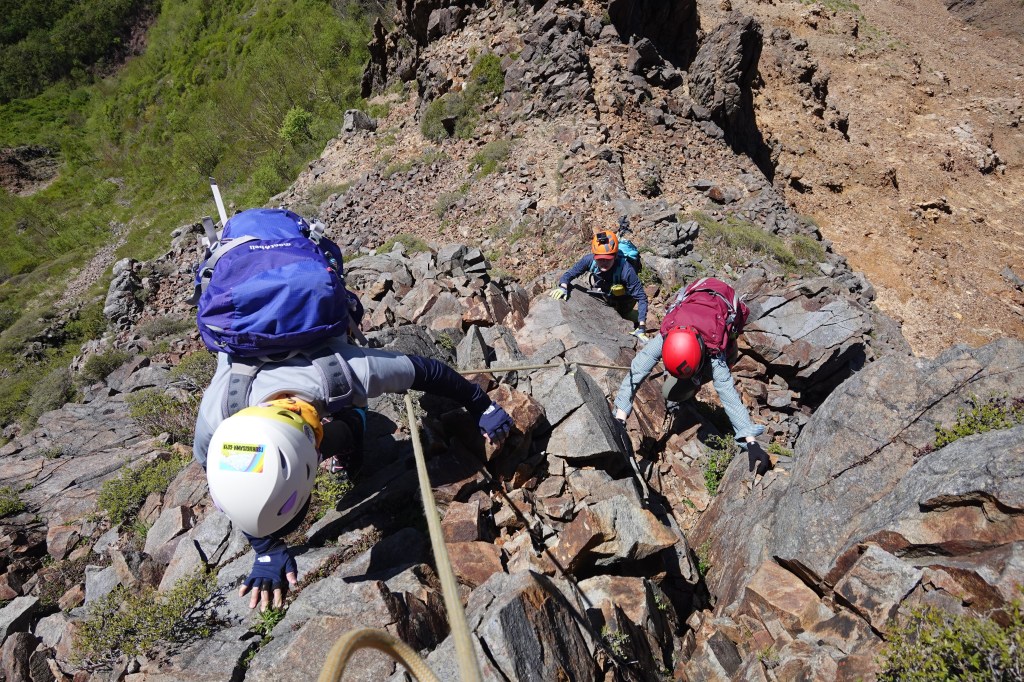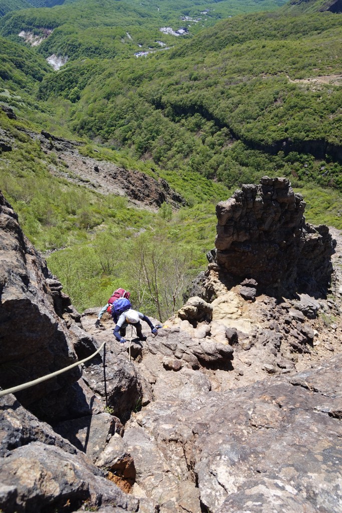 このルートは一般登山道からよく見えるので、岩壁を上がってきた我々に驚いている方もいました。