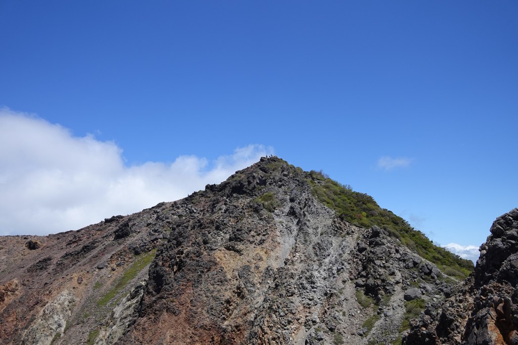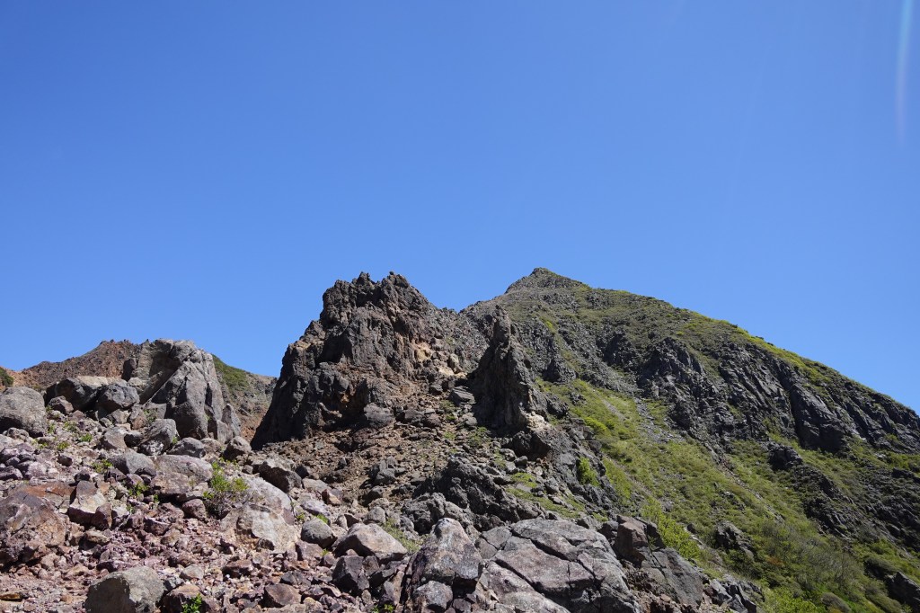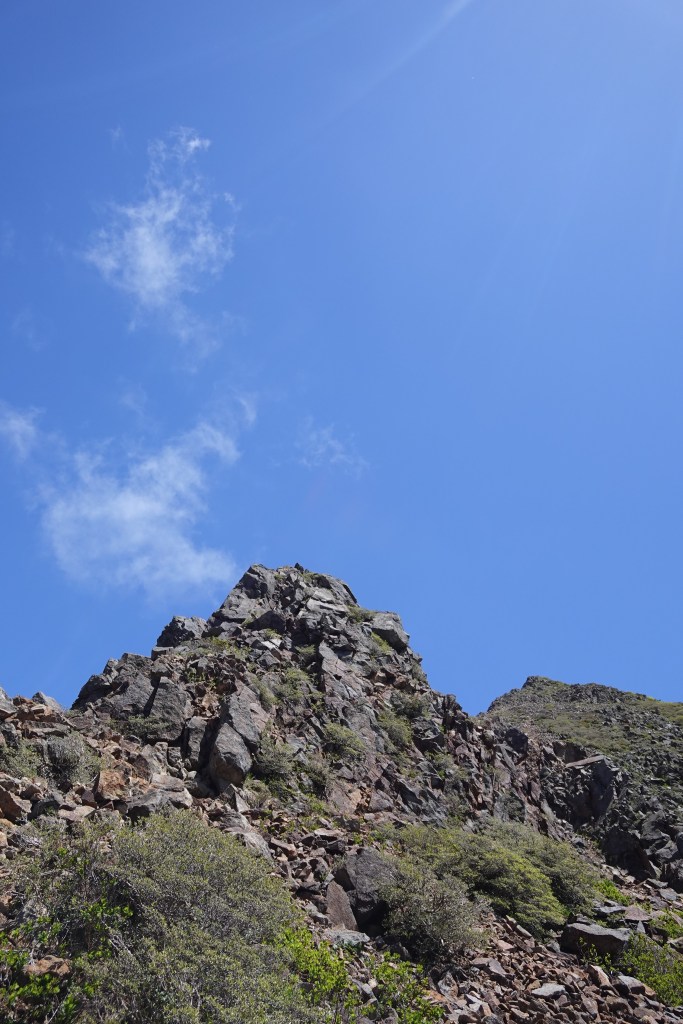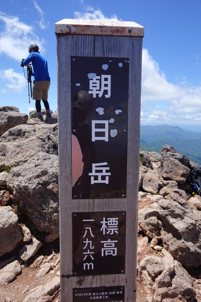 最後の直下の岩壁を登ると朝日岳の頂上。