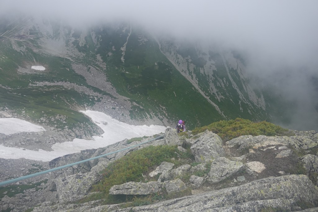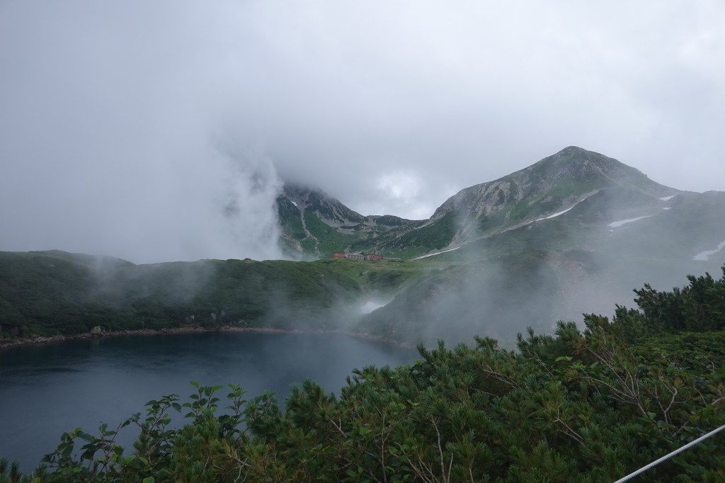 ずっと怪しい空でしたが、一ノ越に降りてくると雨が降り始めました。