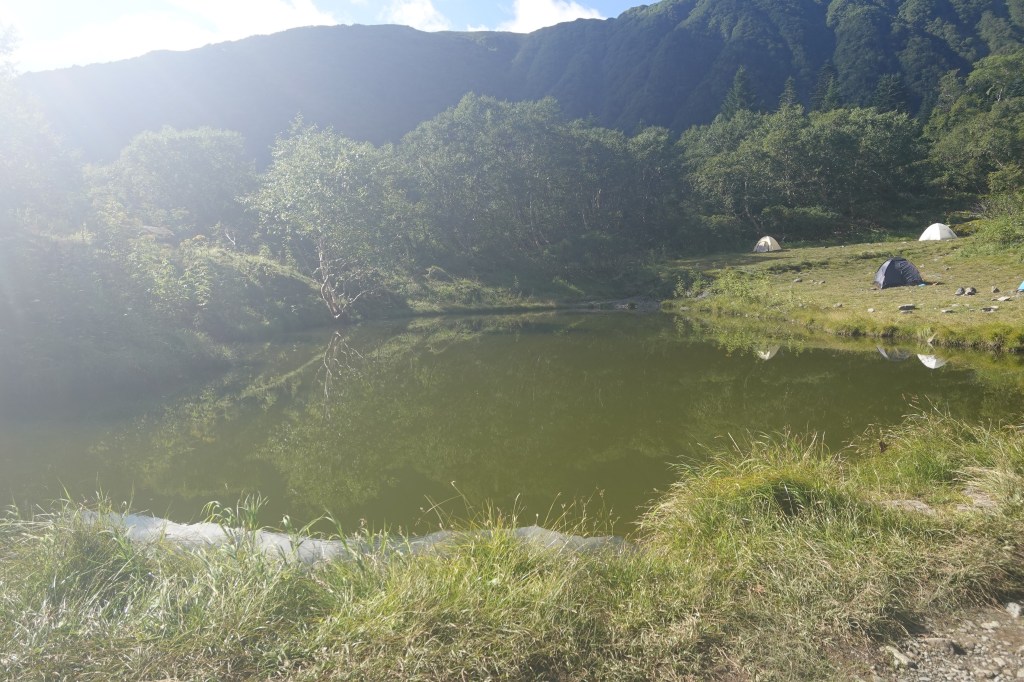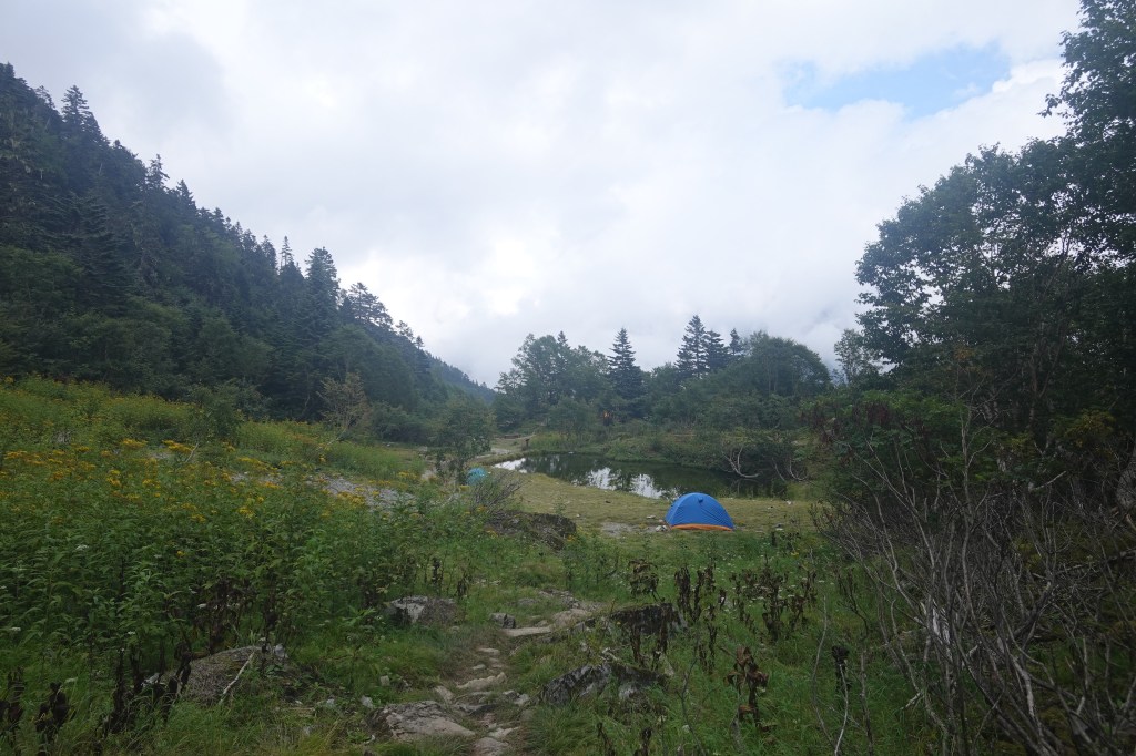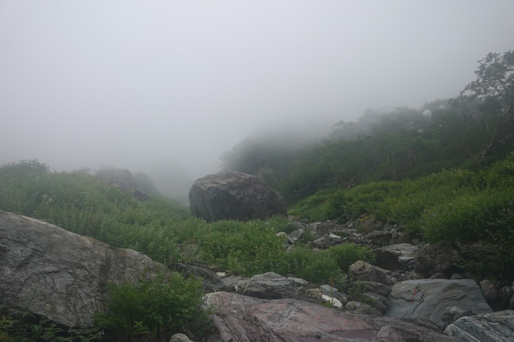 小雨の中、大樺沢を下って白根御池小屋へ。