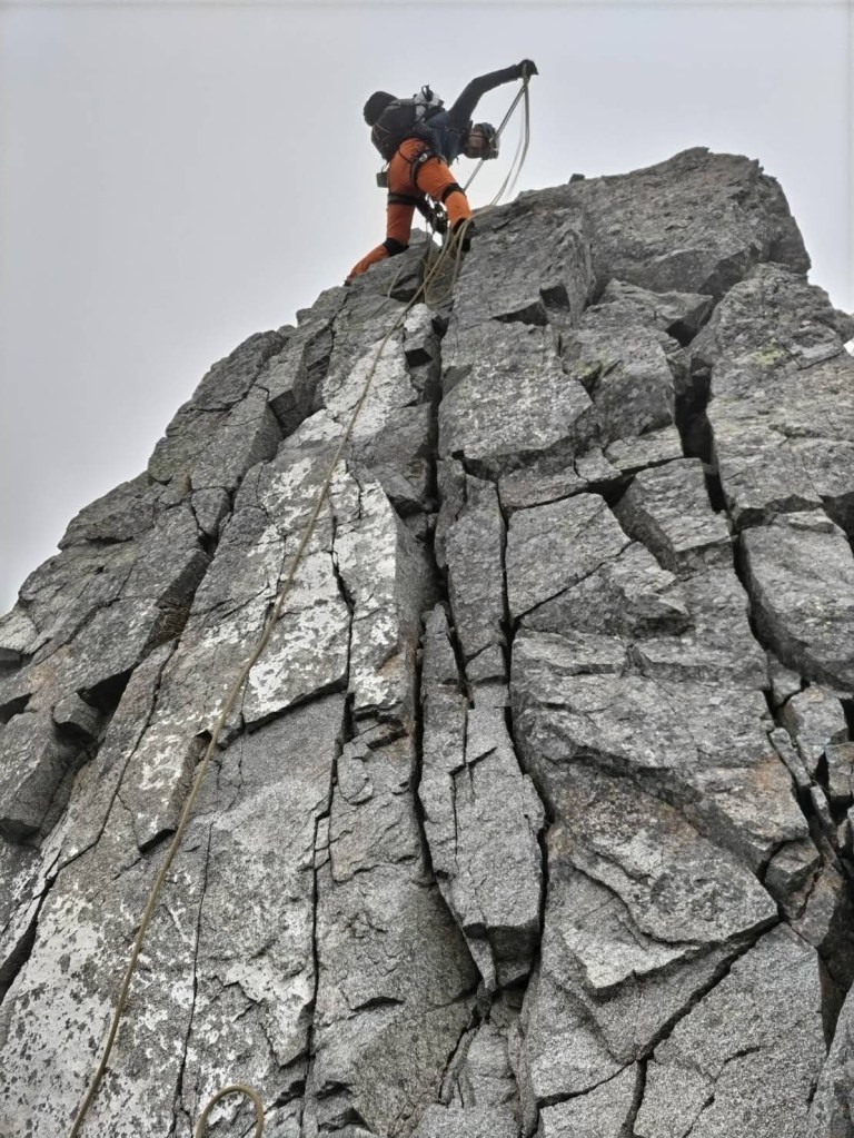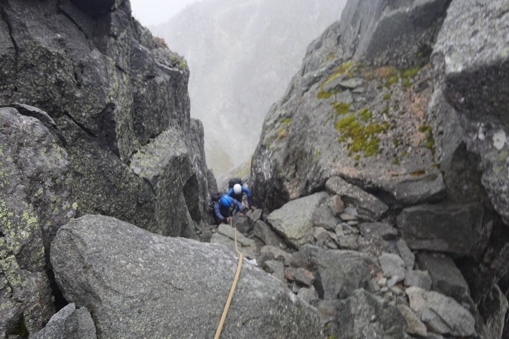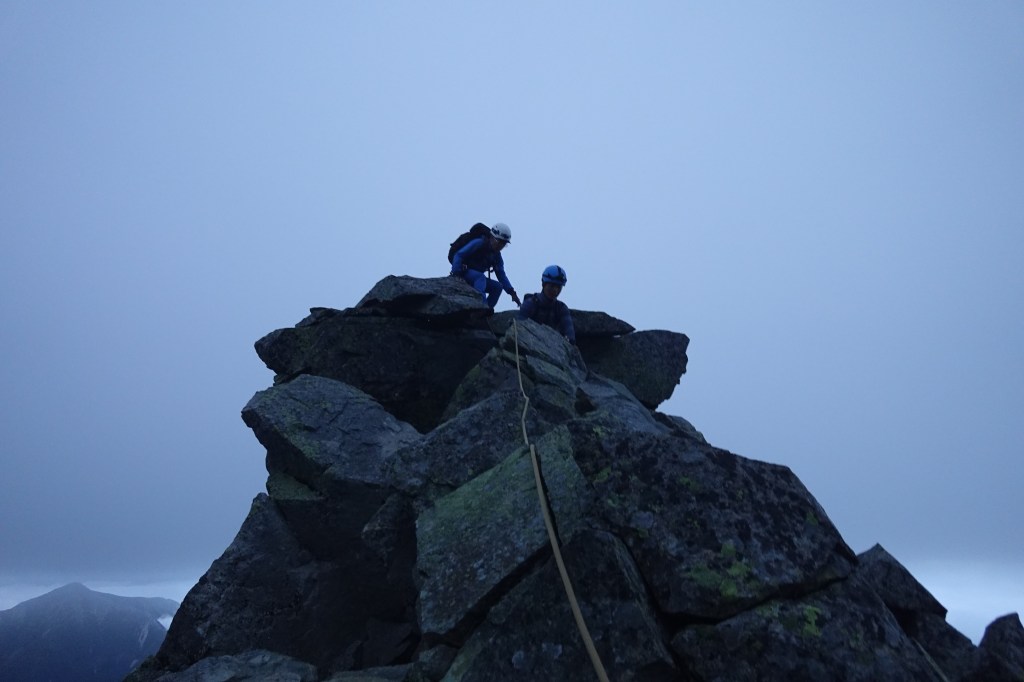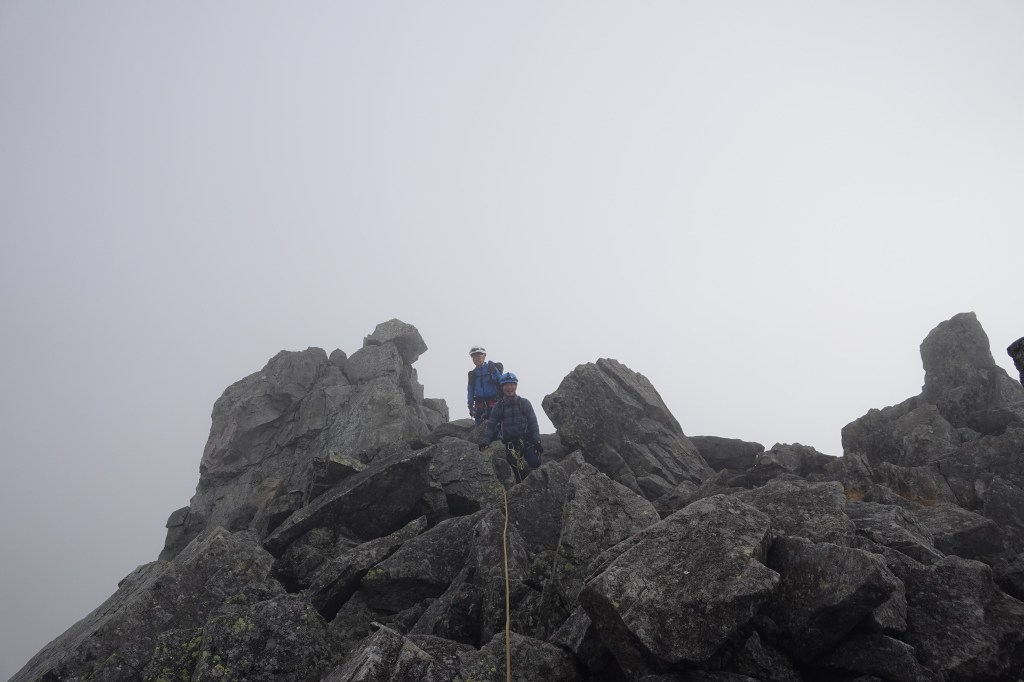 Ⅲ峰のクライミングセクションを抜け、Ⅲ峰とほぼつながっている感じのⅡ峰をロワーダウンすると、あとはビクトリーロードを前穂の頂上。