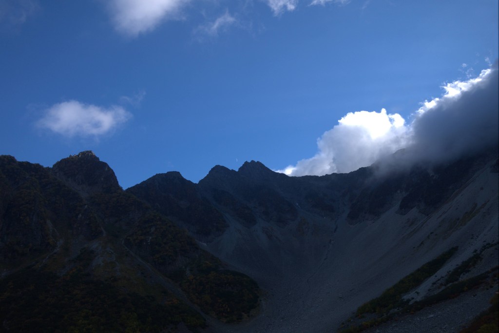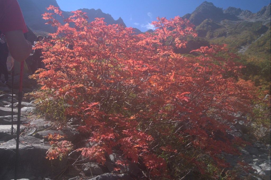 今年は暖かく、涸沢の紅葉はまだ始まったばかりでした。
