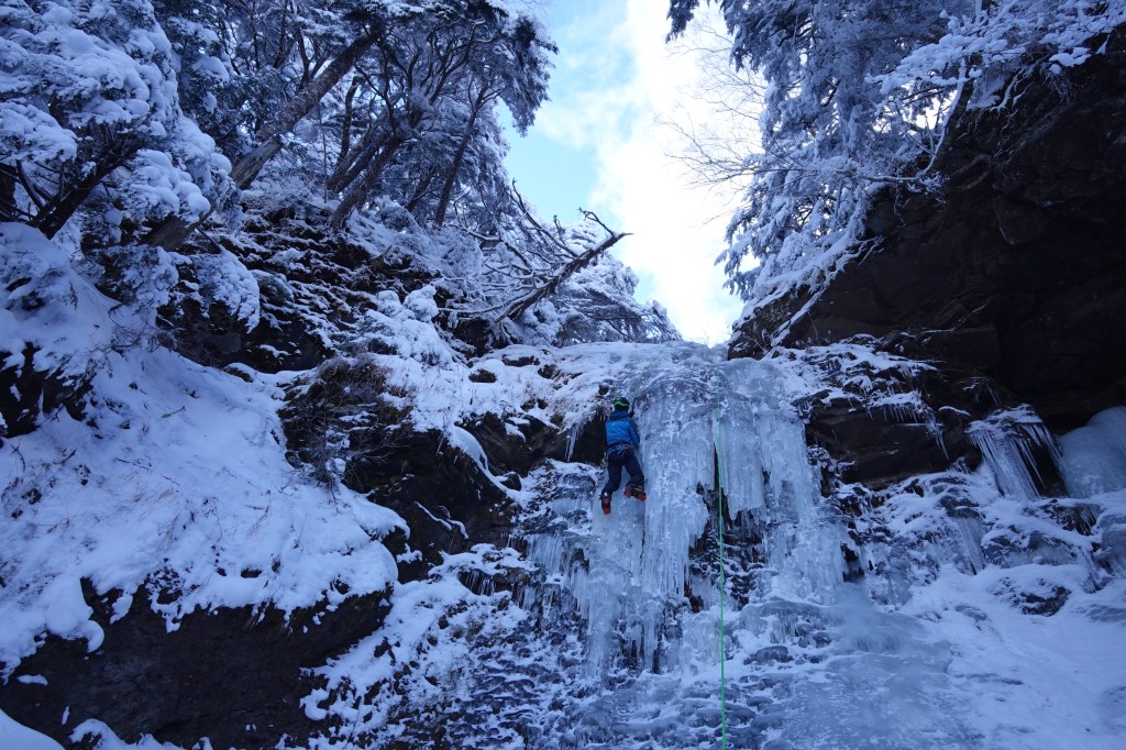 アイスギャラリーで最も大きく登りごたえがあるので、大人気。
