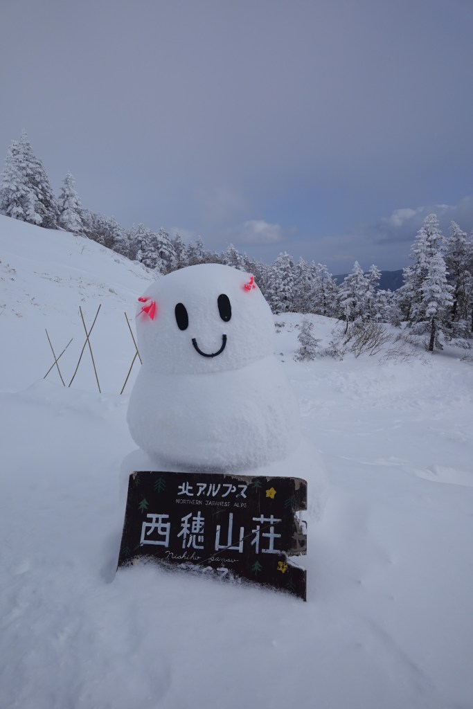 雪だるまとお正月のお出迎えで、まずは入山祝い。