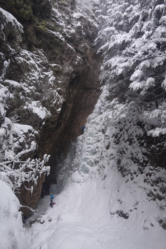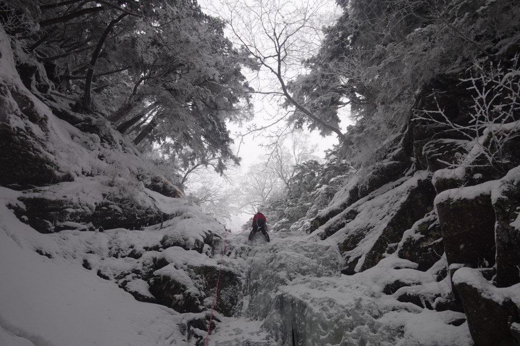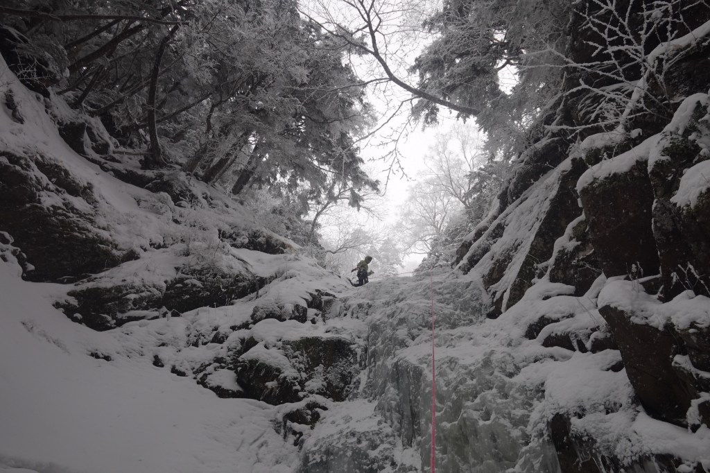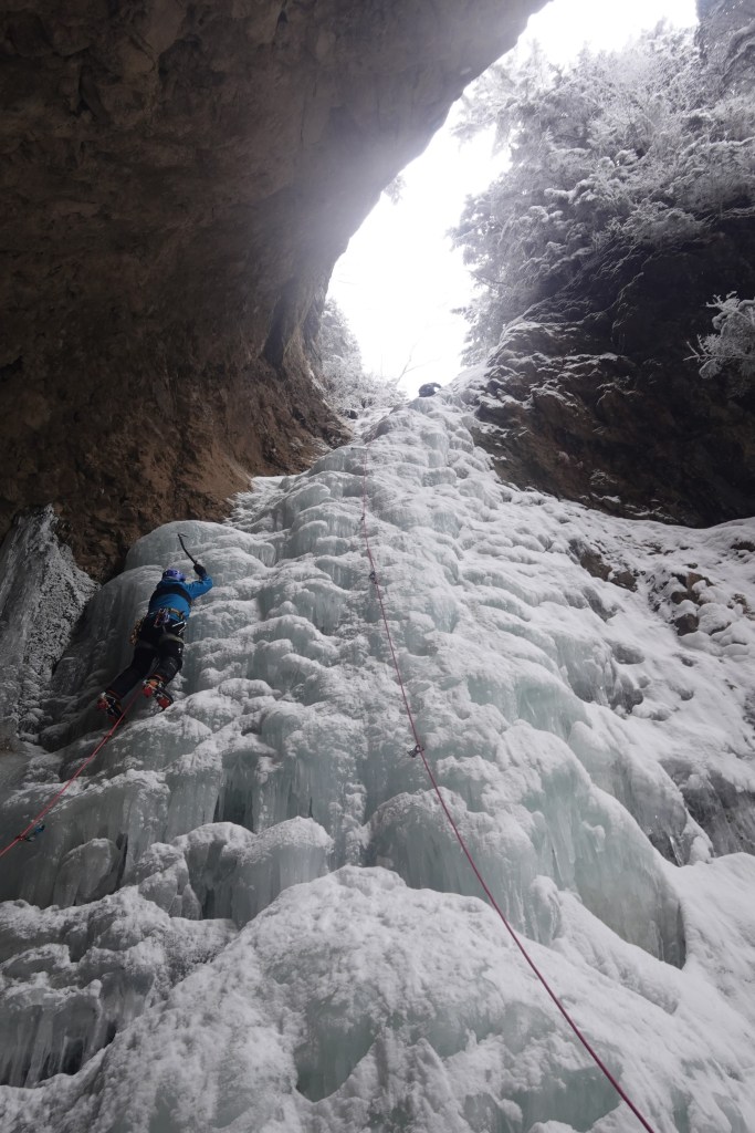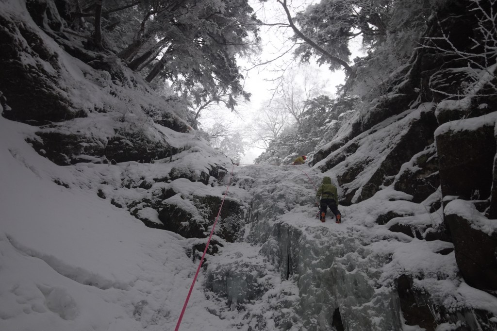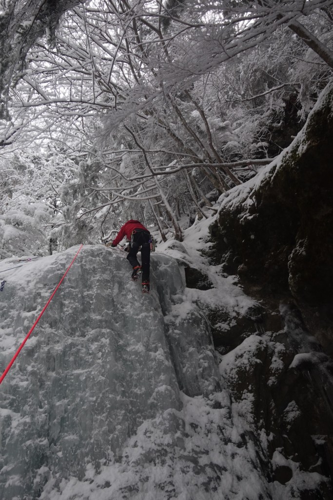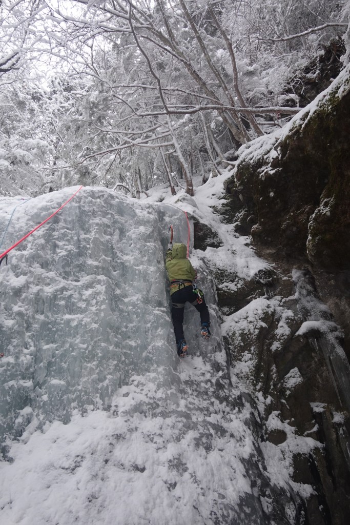 醤油樽の滝自体は既に4パーティー取り付いていていたので、手前のF2のバーチカル部分で練習しました。