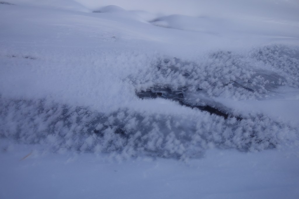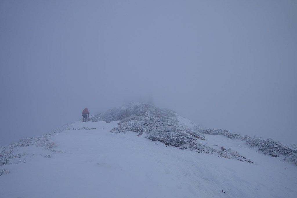 ギリギリ行動できそうだったので、滑落リスクの少ないラインから頂上へ上がりました。